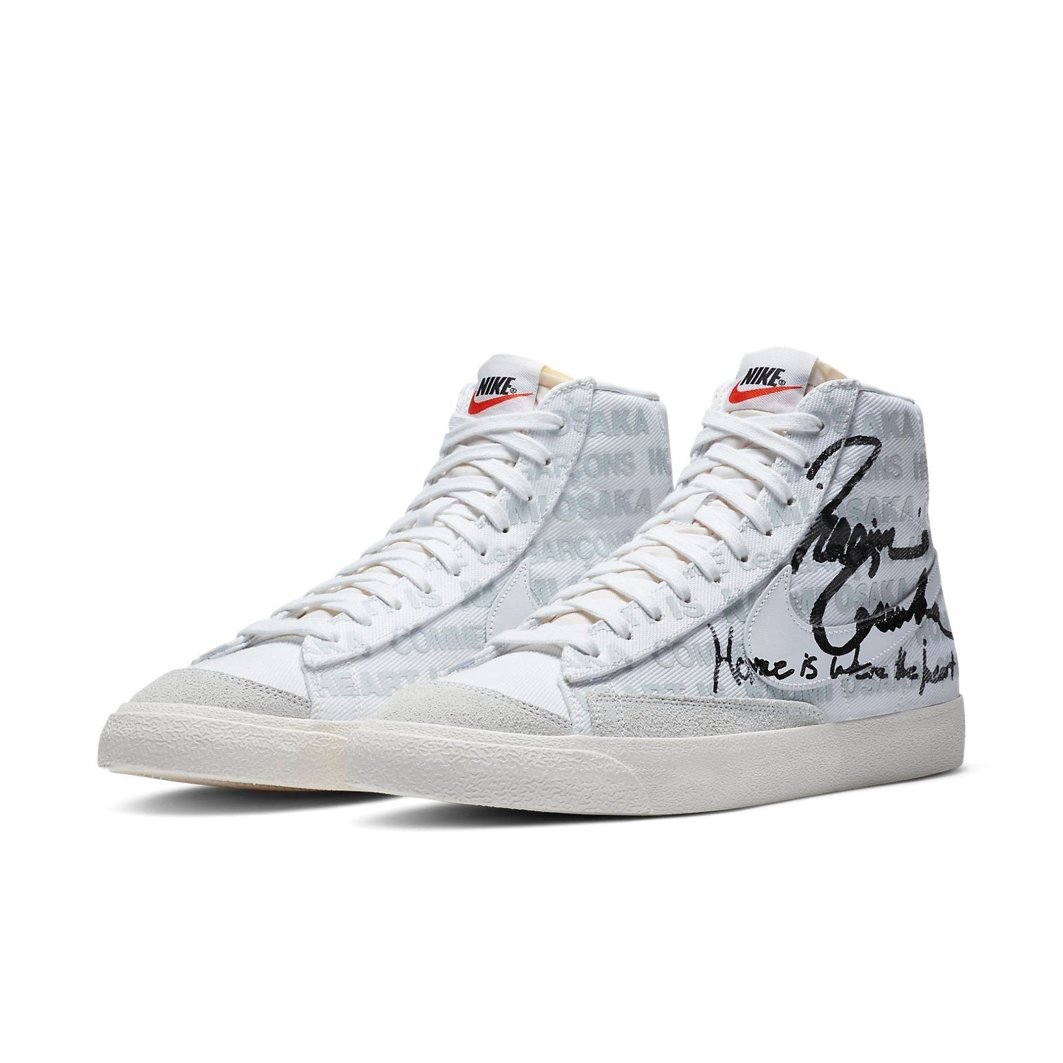 Naomi Osaka was named one of the „People of the Year“ by COMME des GAR ONS and SWITCH Publishing in 2020. Nike teamed up with COMME des GAR ONS to celebrate this accomplishment by creating a special Blazer Mid 77 Vintage for her.This Blazer Mid 77 Vintage included many of the same features found in other versions of the sneaker. Although it was constructed out of white textile instead of leather like most Nike Blazer Mid 77 Vintage sneakers, it still had the sneaker s patented foam tongues, suede mudguards, and large leather heel pieces that feature Nike branding.But it s the personal touches on these Blazers that we love so much. They have a replica of Osaka s signature on each shoe along with the words „Home Is Where the Heart Is“ right underneath it. The Nike Blazer Mid Comme des Garcons x Naomi Osaka was released on December 5, 2020 for a retail price of $120.