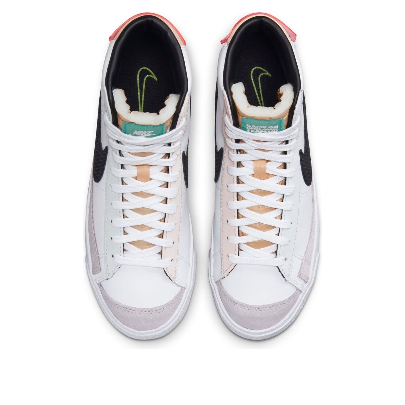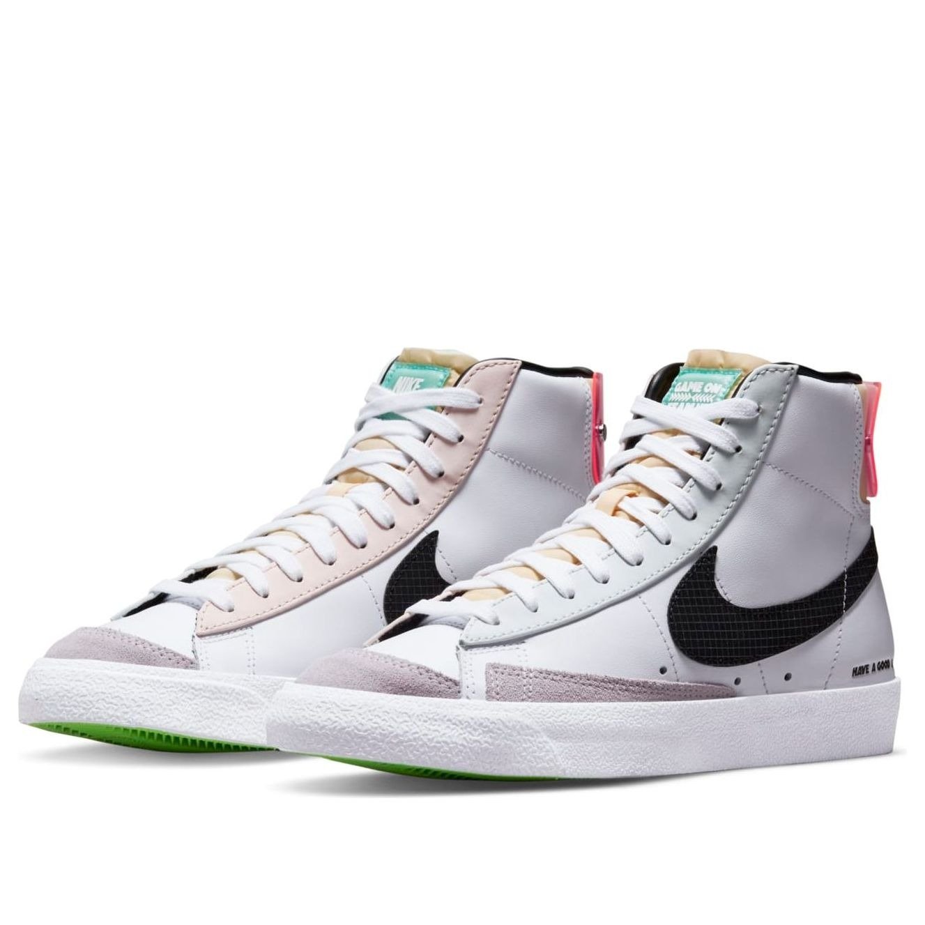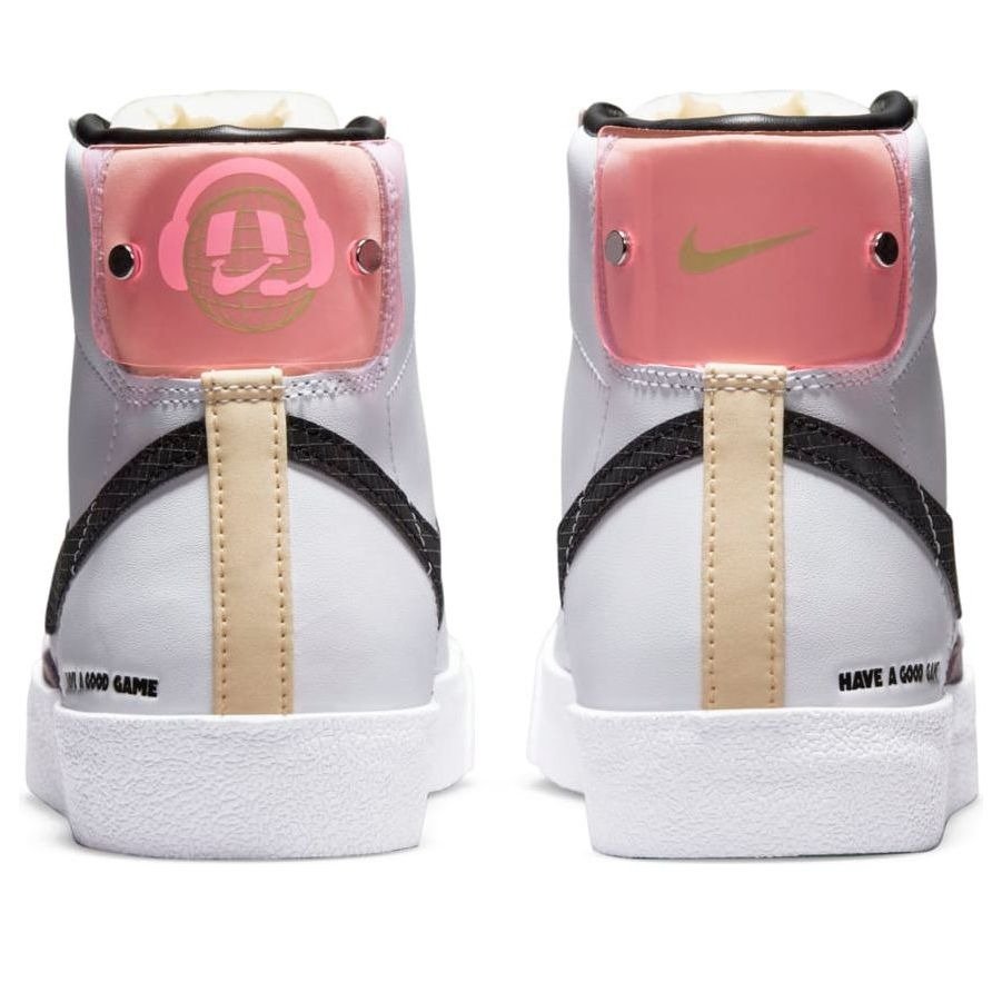 Similar to the Nike Air Force 1 Pixel colorway, the digital-inspired detailing and global gaming logo on its translucent heel tag give the Nike Blazer Mid Have a Good Game (W) a futuristic look.The Nike Blazer Mid Have a Good Game sneaker features a smooth, white leather base with „Have A Good Game“ embossed onto its lateral side as well as a neutral-toned tongue label reading „Game On/Team Up.“ It also has gray suede overlays on the forefoot and a white midsole over a green rubber outsole.The Nike Blazer Mid Have a Good Game (W) silhouette was released in September 2021, retailing at $100.