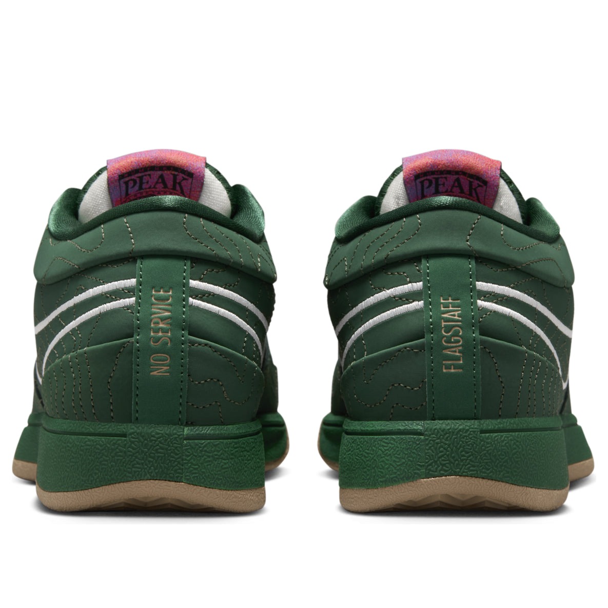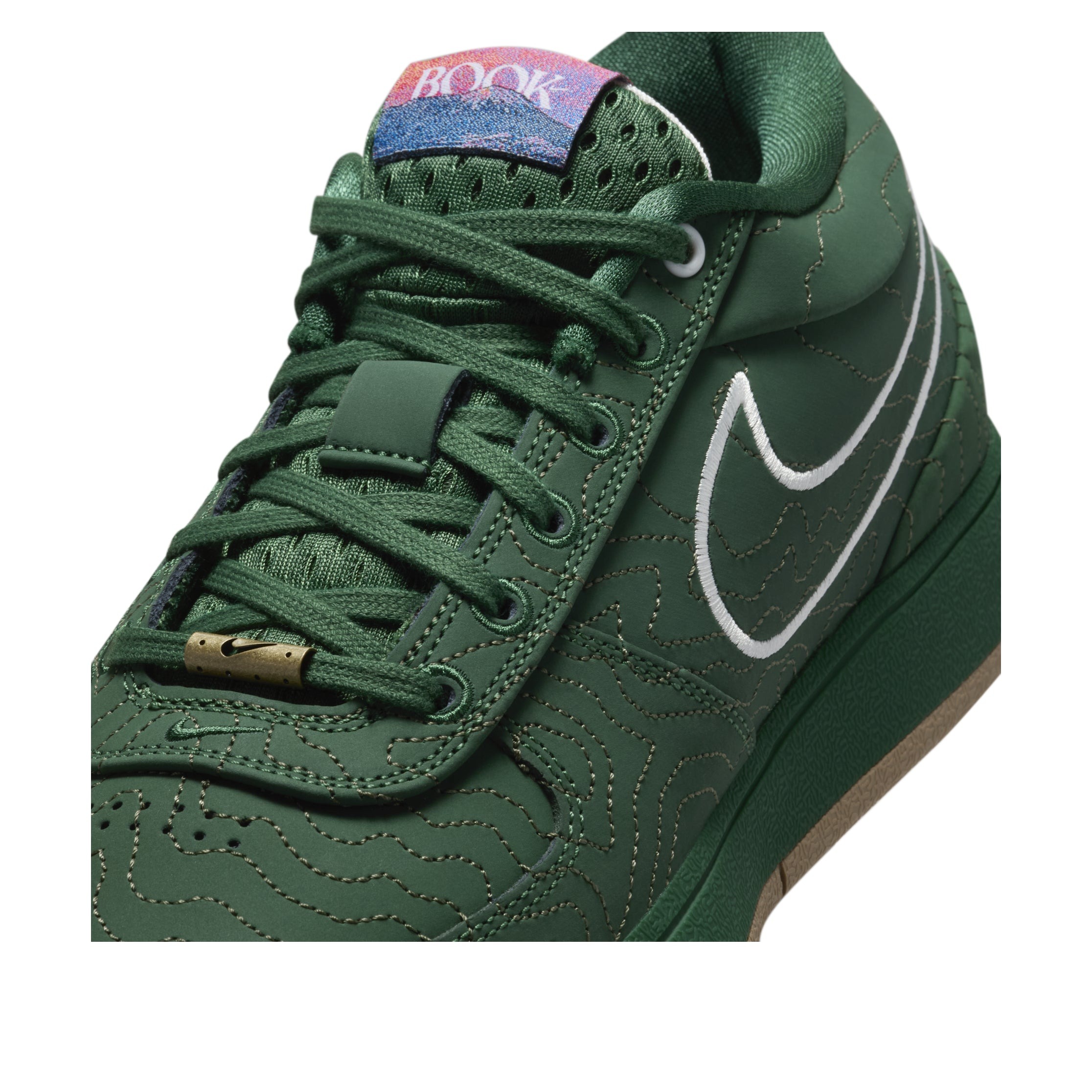 The Nike Book 1 Flagstaff is a performance shoe designed as part of a partnership with American basketball star Devin Booker. This iteration of the Nike Book 1 has a smooth, durable upper in a Fir green color that represents the mountain paths and forests of Flagstaff, where Devin Booker goes to escape the desert heat. Decorative stitching crosses the upper for visual interest. A white outline of the Swoosh appears on each side. The tongue contains a Book branding patch and pays homage to Humphrey s Peak, the highest point in Flagstaff. The heels are adorned with gold lettering reading „Flagstaff“ on one heel and „no service“ on the other. An Air Zoom unit under the heel allows for responsiveness and quick movements. What we like best about this shoe is the woven tongue tag, paying homage to Humphrey s Peak, which provides a nice contrast to the green color of the rest of the shoe. The Nike Book 1 Flagstaff was released on February 1, 2025, for $140.
