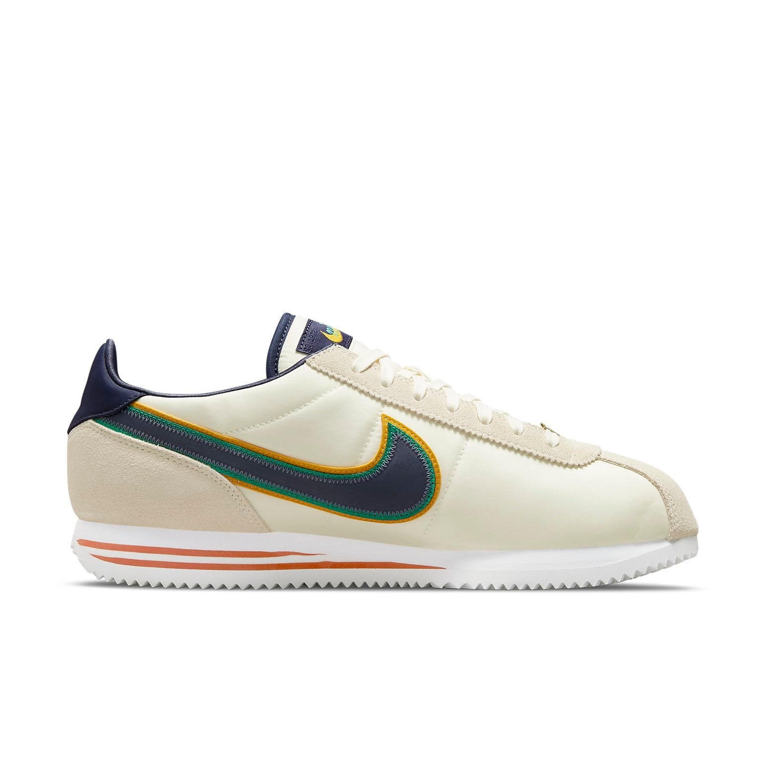 The Nike Cortez Basic Premium 1972 features a Coconut Milk/Dark Sulfur-Stadium Green-Thunder Blue colorway. This Nike Cortez Basic Premium was first released for $85 on June 28, 2021.