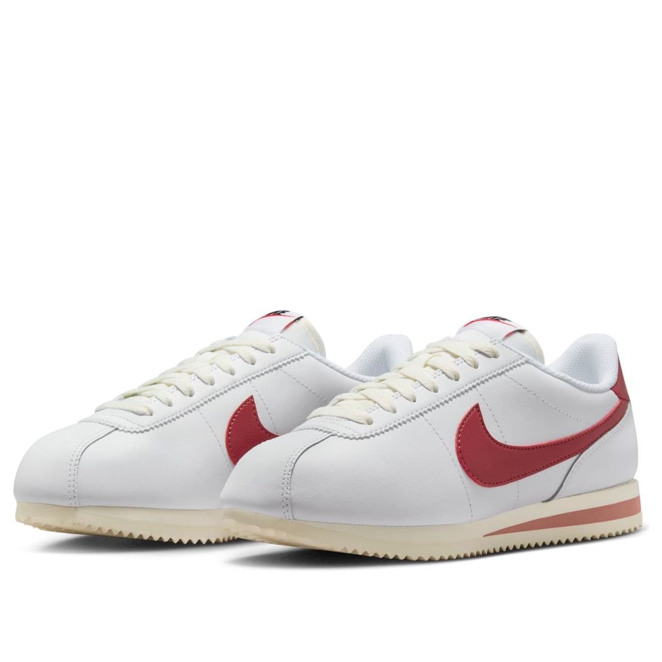 The Nike Cortez Red Stardust Cedar (Women’s) features a White/Red Stardust/Sail/Cedar colorway. This Nike Cortez was first released for $100.