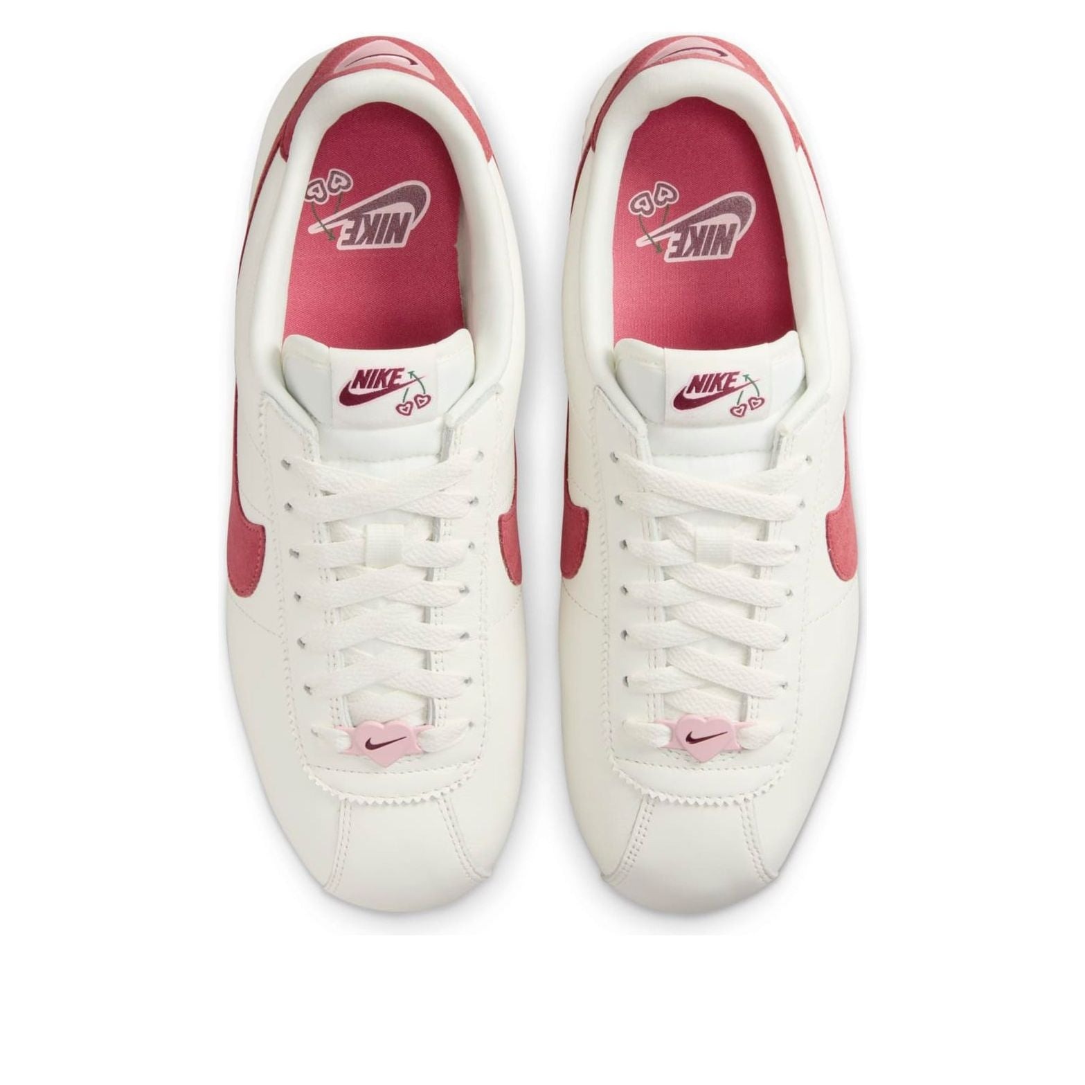 The Nike Cortez SE Valentines Day (2024) (Women’s) brings a celebratory twist to a classic silhouette that has been a staple in Nike’s lineup since its release in 1972.Crafted from premium leather, the shoe s upper comes in a solid off-white colorway that provides a contrasting base for red suede details in the signature Swoosh and back tab. Besides these red accents, added homage is paid to Valentine s Day with heart-shaped cherries on the shoe s tongue tag and a pink heart on the lower end of a standard lacing system. Lightweight cushioning for all-day comfort is delivered by a full-length foam midsole, which is supported by a rubber outsole with a herringbone pattern tread.What our experts especially appreciate about the Nike Cortez SE Valentines Day (2024) (Women’s) is the matching red interior lining with added romantic detailing. This shoe was originally released for $100 when it appeared on the scene on February 14, 2024.