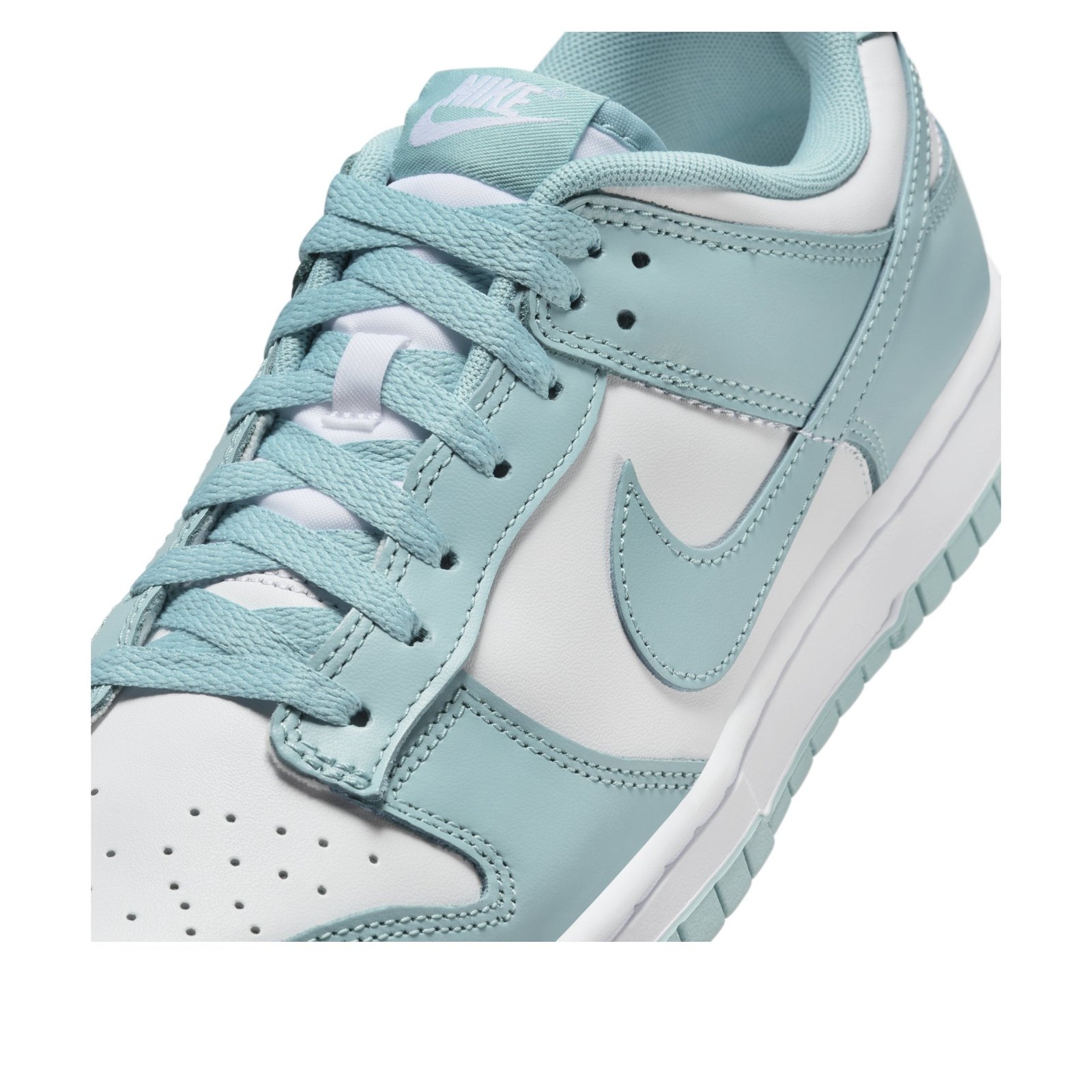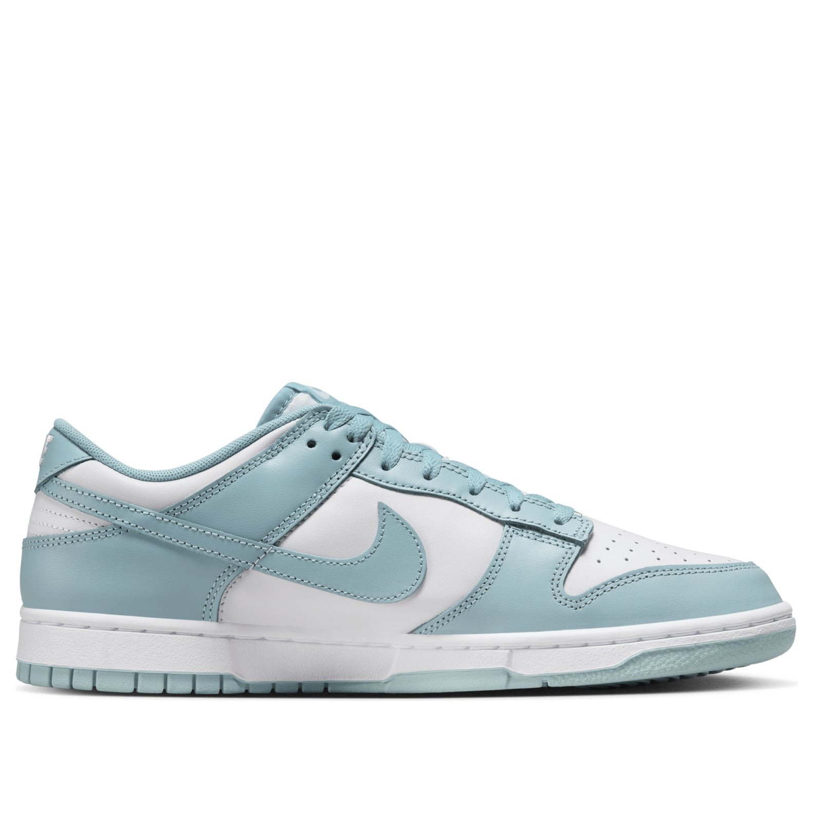 The Nike Dunk Low Denim Turquoise is a low-top shoe made with premium materials to increase athletic performance. The denim turquoise version of the Nike Dunk Low is made of leather. White leather forms the base, the sides, the ankle collar, and the toe box, which is perforated for breathability. Leather overlays in the Denim Turquoise color form the toe cap, ankle strap, eyestays, and heel collar, which also bears the Nike brand name stitched in white. The Nike Swoosh also adorns each side in Denim Turquoise. Another Nike patch appears on the tongue. The shoe features a white midsole and Denim Turquoise outsole that is patterned for traction. What we like most about the shoe is the smooth leather upper, which gives it a crisp and clean look. The Nike Dunk Low Denim Turquoise was released on June 1, 2024, for a retail price of $115.