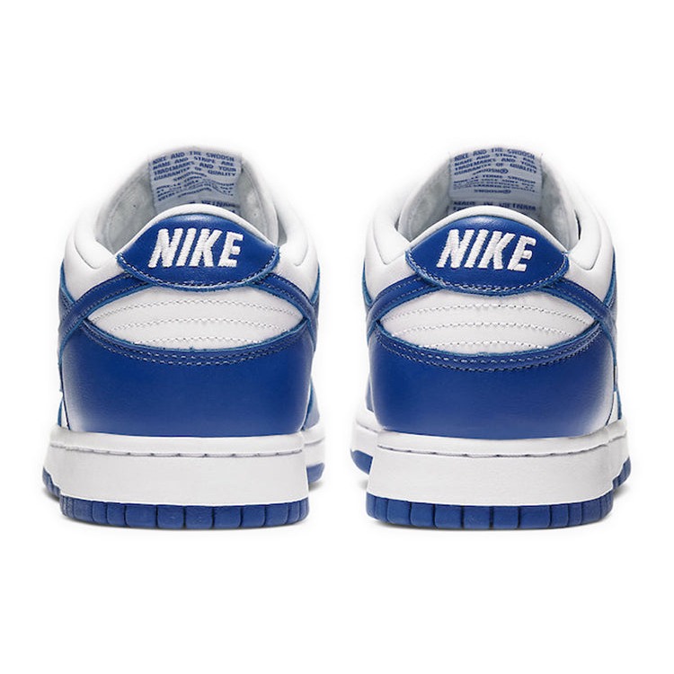 Nike celebrated the 35th Anniversary of the Nike Dunk by releasing the Nike Dunk Low SP Syracuse (2020), now available on Newsole. The Nike Dunk debuted as part of the 1985 Nike College Color s program, a program that delivered footwear in the school colors of 12 popular basketball programs allowing fans to support their favorite teams from head to toe. This Kentucky colorway was among the first collegiate colorways Nike released, breaking the mold for colorways used on basketball shoes.This Nike Dunk Low SP is composed of a white leather upper with varsity royal leather overlays. A white midsole, royal outsole, and classic Nike branding on the tongue completes the design. These sneakers released in March of 2020 and retailed for $100.