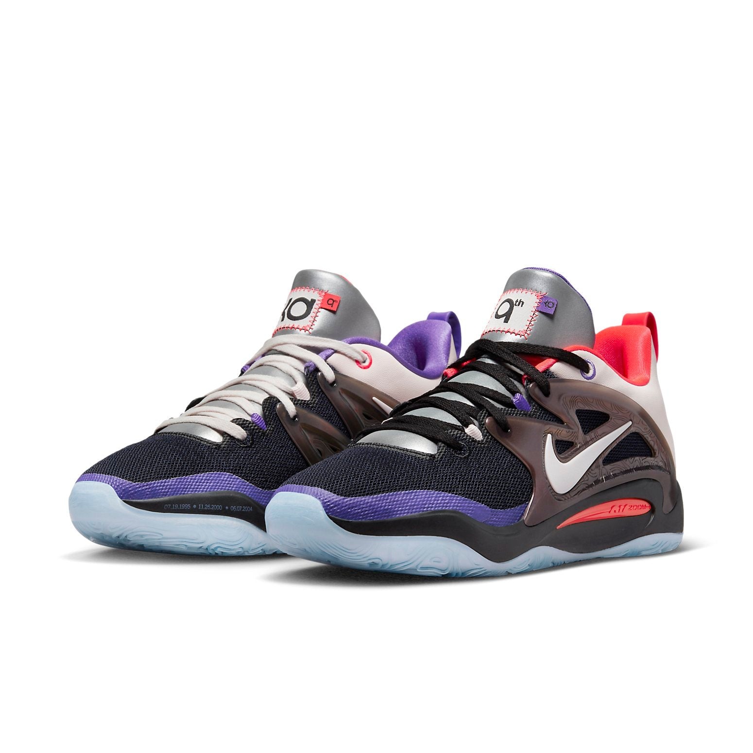 The Nike KD 15 Producer Pack 9th Wonder Charles Douthit is inspired by Zion V: The Ballad of Charles Douthit by the North Carolina-based producer 9th Wonder. The rubber outsole of the Nike KD 15 has a white tan and sits beneath a black midsole. Both are outlined by a royal purple mudguard at the front. On the heel counter, plain tan suede is cut in half by an embellishing orange stripe on the right shoe and a purple one on the left. The vamp is made from a dark mesh that enhances breathability. The bold design plastered on the quarters of the Nike KD 15 Producer Pack 9th Wonder Charles Douthit is the part our experts like. It features a black patterned patch with a purple swoosh at its center. The purple and orange linings on the heel notch and inner tongue add a cheerful vibe. With a retail price of $160, this shoe was released on September 17th 2022.