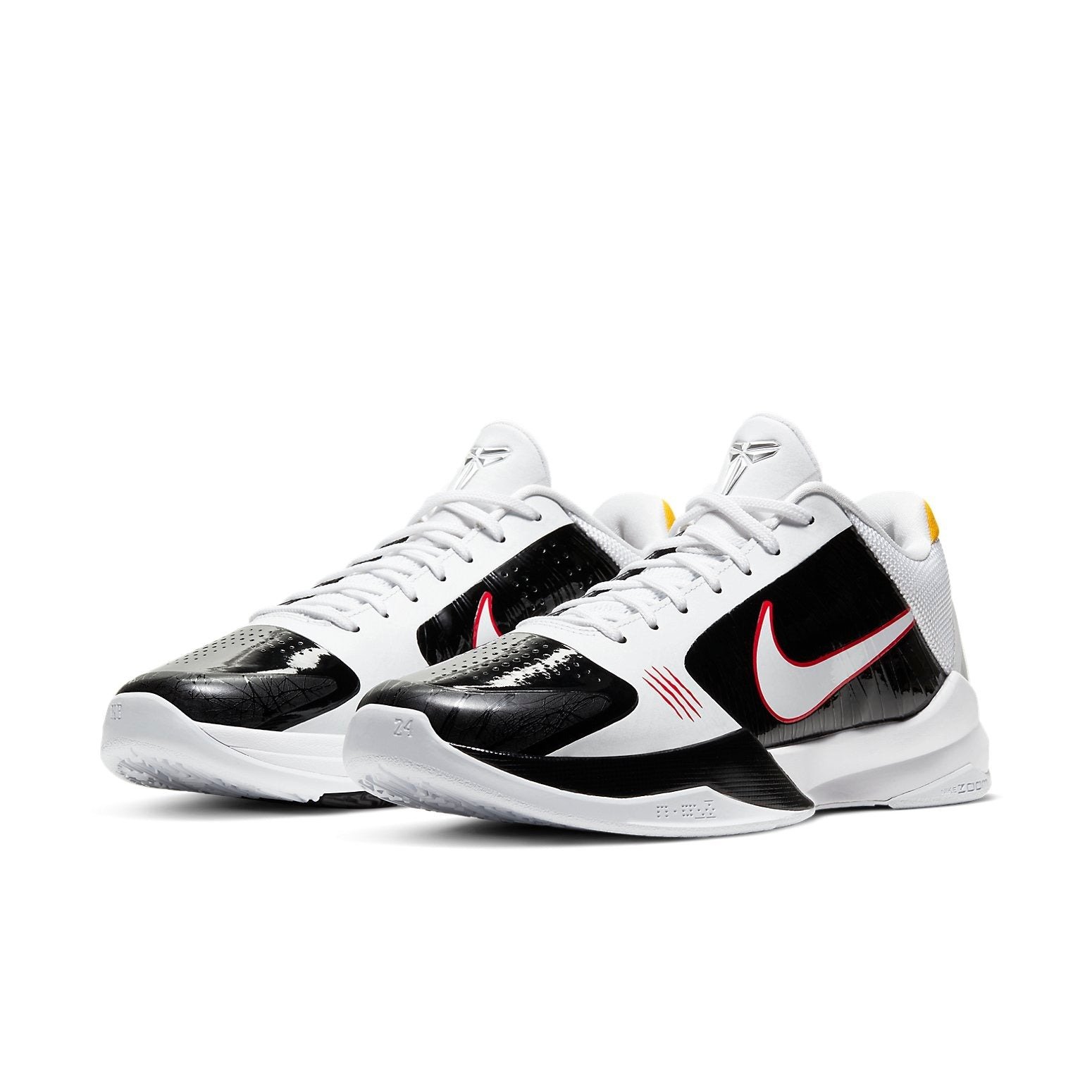 If you thought the legendary Kobe V Bruce Lee would get a reissue without anything else special lined up, you must have underestimated the importance of this occasion. In addition to the Kobe V Protro Bruce Lee, Nike released a brand new colorway inspired by Bruce Lee with the Kobe V Protro Bruce Lee Alternate.The Kobe V Protro Alternative Bruce Lee delivers a black and white take on the original. Black and white paneling comprise the upper while hits of red can be seen outlining the Swoosh and on the lateral side scratch marks, tributing Enter the Dragon. A white and black Zoom sole, yellow heel cushioning, and silver Kobe branding on the tongue completes this alternate design.The Kobe V Protro Alt Bruce Lee released in November of 2020 for $180.