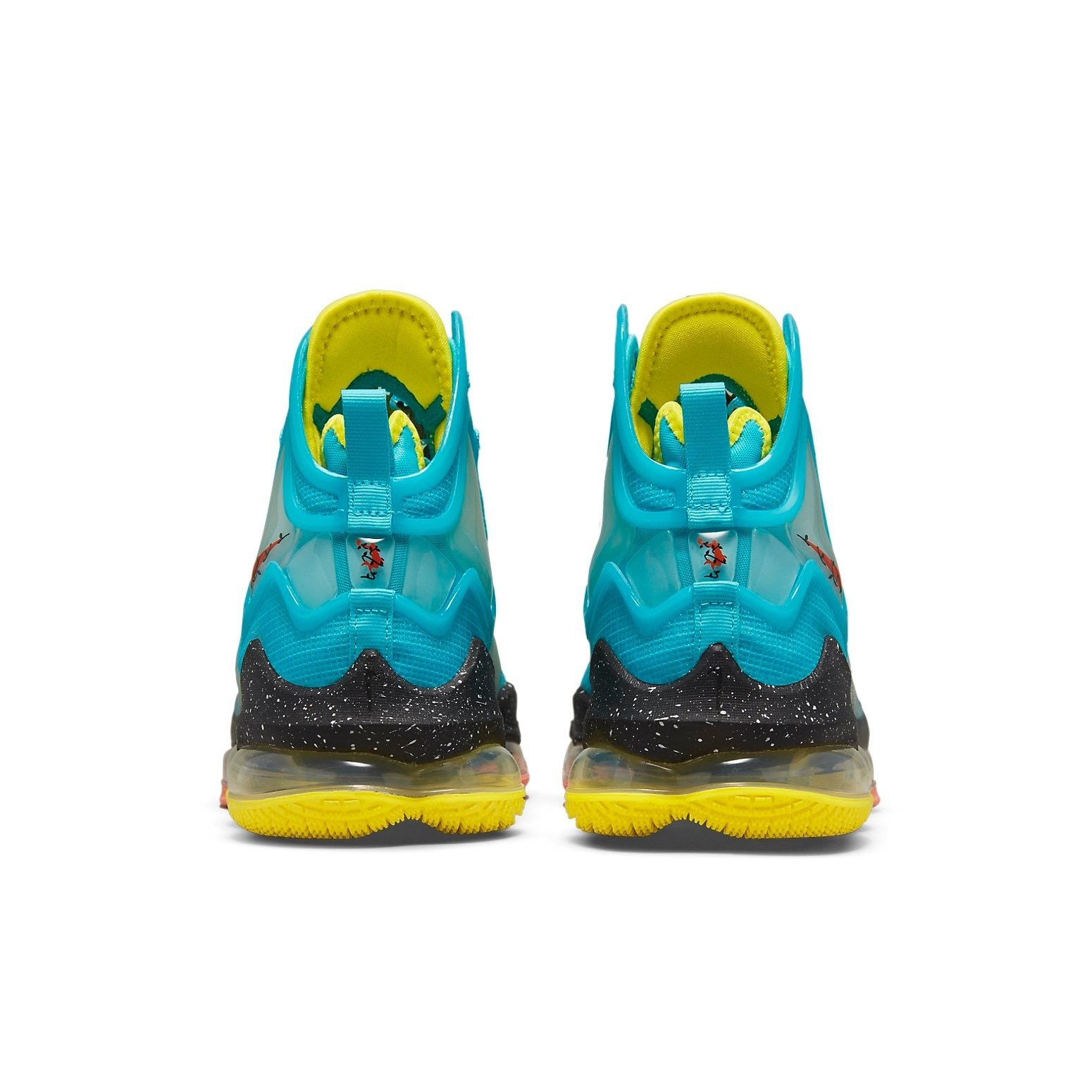Constructed with a greenish-blue mesh upper, the Nike LeBron 19 Christmas carries the spirit of a Colorado Blue Spruce, a common type of Christmas tree. Semi-translucent TPU overlays and a festive Swoosh graphic on the ankle nod to the bright lights that are often used as tree decorations. At the base, a speckled midsole with full-length Air units adds the finishing touch.The Nike LeBron 19 Christmas released in January of 2021 and retailed for $200.