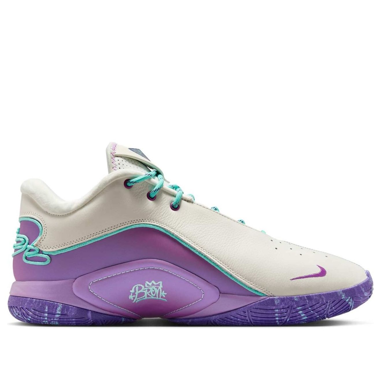 The Nike LeBron 22 Frozen Grapes features a Soft Pearl/Vivid Purple/Court Purple/Hyper Turquoise colorway. This Nike LeBron 22 was first released for $180 on April 01, 2025.