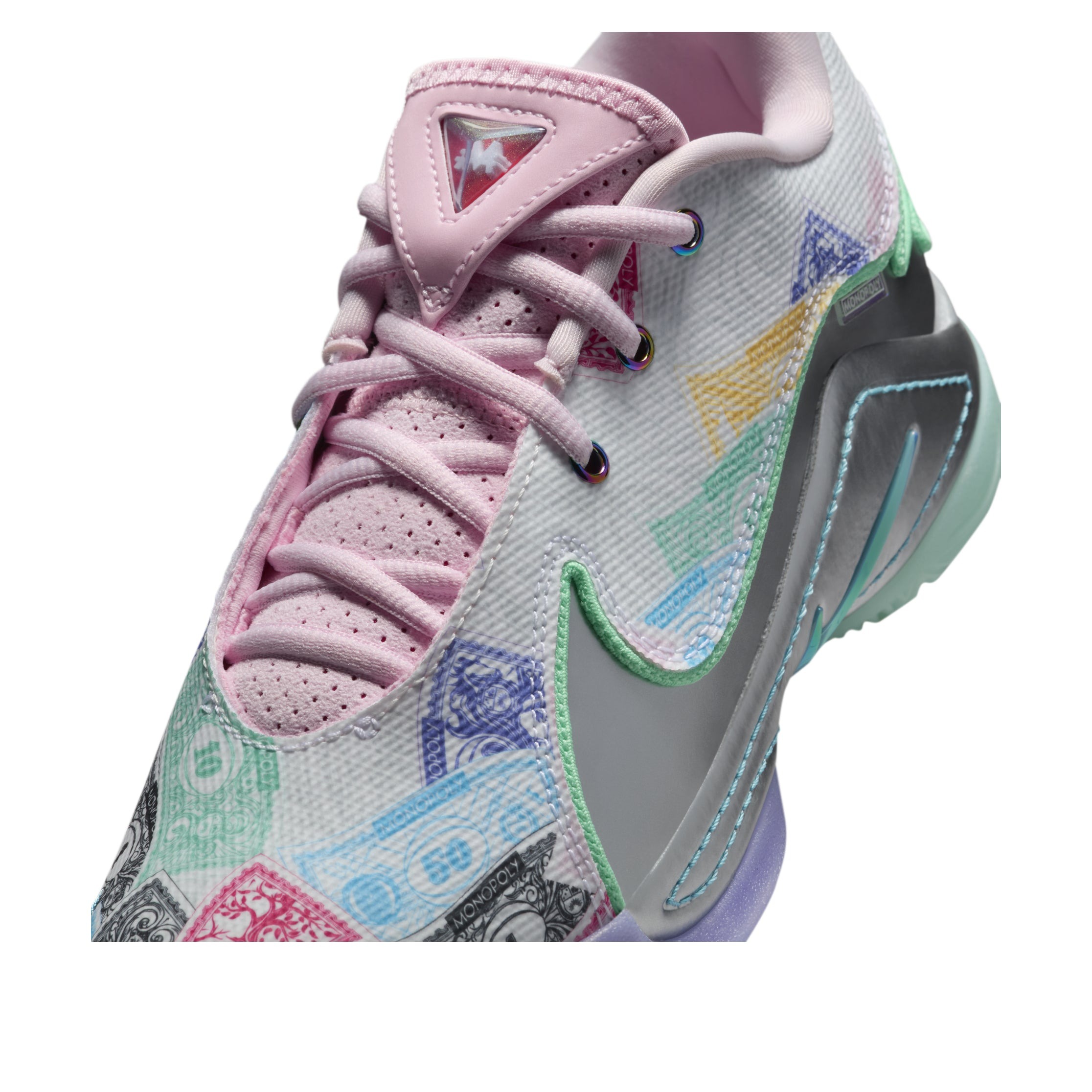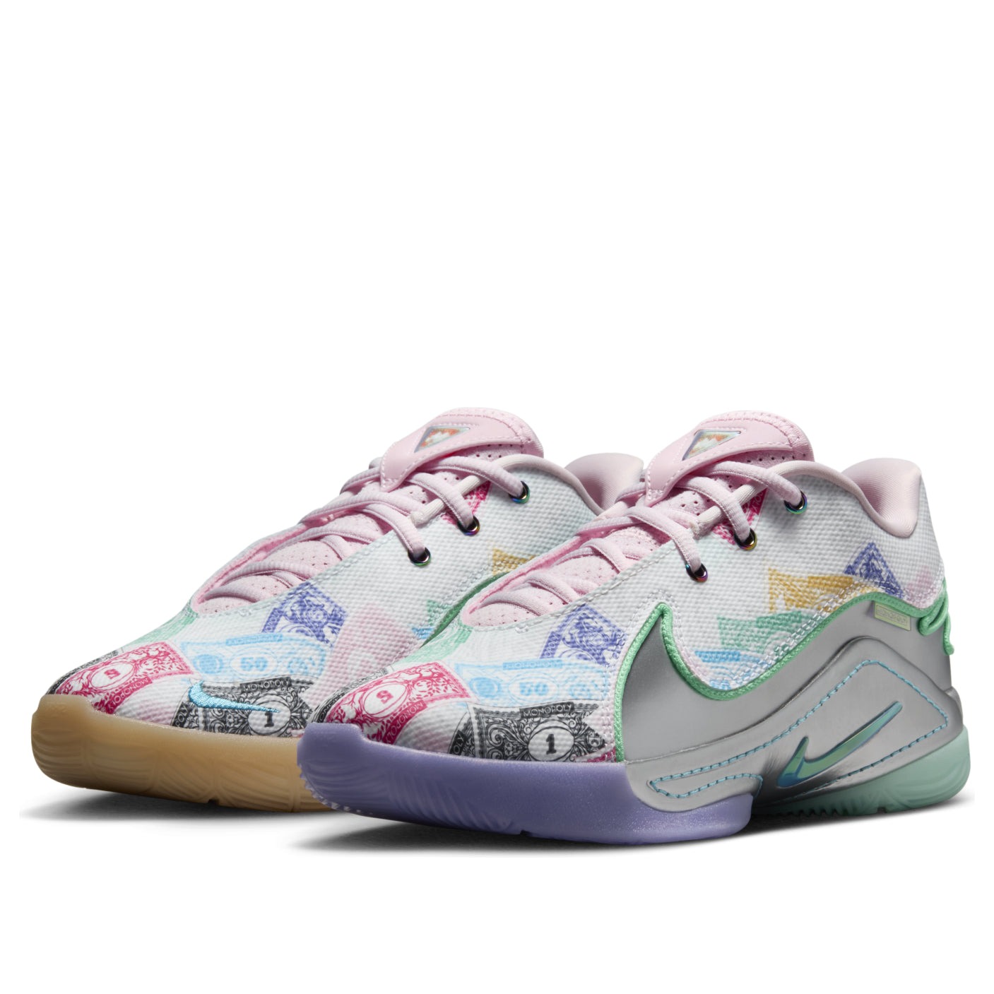 The Nike LeBron 22 Monopoly (GS) features a White/Baltic Blue/Vapor Green-Pink Foam/Metallic Silver colorway. This Nike LeBron 22 was first released for $150 on November 15, 2024.