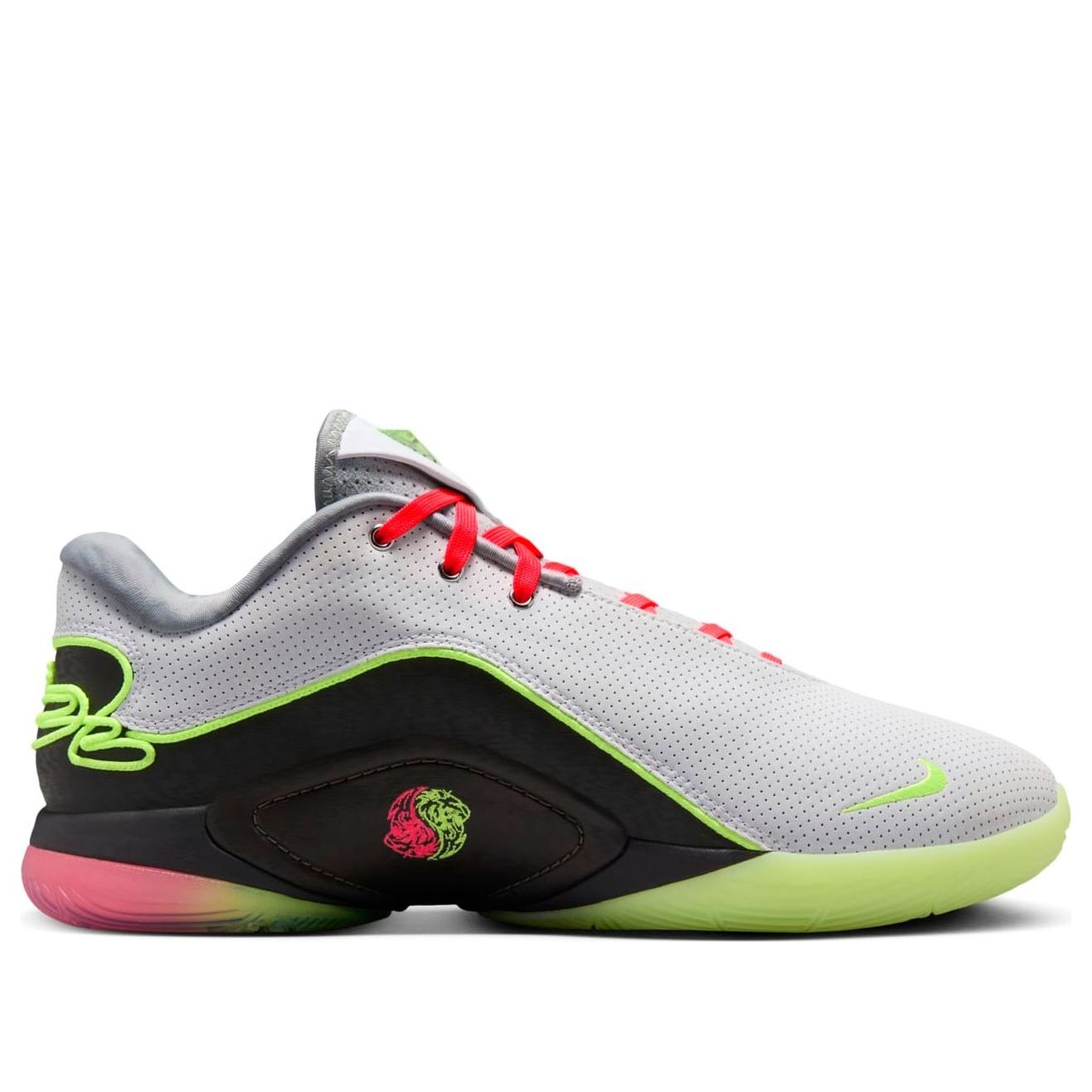 The Nike LeBron 22 Moonlight (Translucent Outsole) features a White/Volt Glow/Medium Ash/Hot Lava/Wolf Grey colorway. This Nike LeBron 22 was first released for $180 on November 01, 2024.