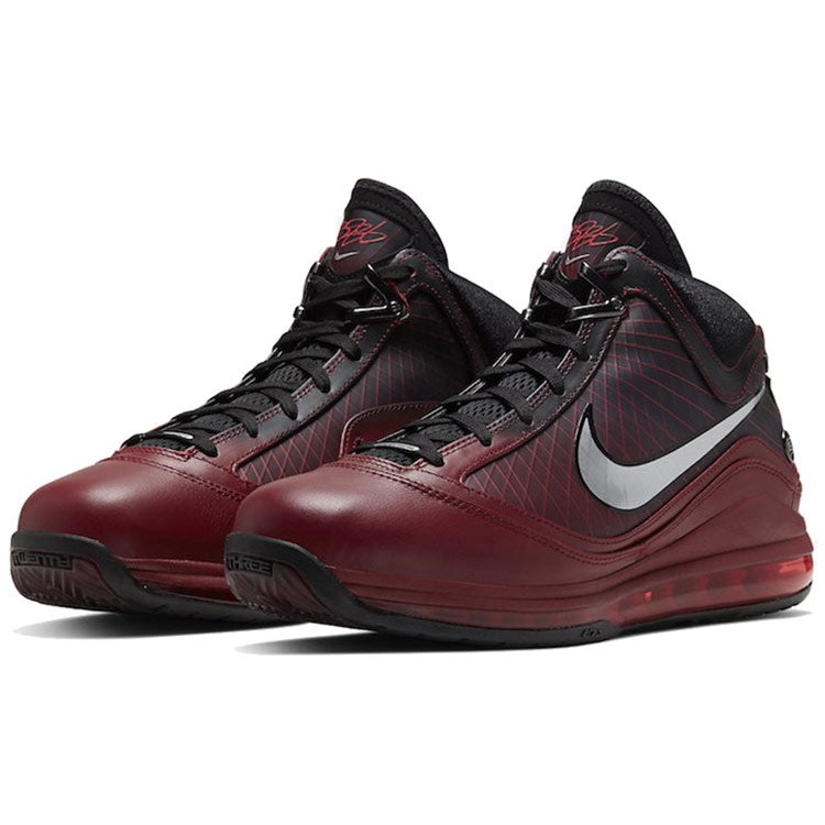 The Nike LeBron 7 Christmas (2019) is a collaboration between Nike and Lebron James.The Christmas Nike LeBron 7 (2019) arrives in a team red, metallic silver-black-hot red color scheme. The sneaker has an upper that is constructed from various materials, including leather and synthetic materials, to provide a comfortable and durable fit. The shoe features intricate detailing, such as embroidered patterns and geometric-shaped illustrations. The shoe’s midsole features Nike’s innovative Air technology, which provides cushioning and shock absorption. The outsole is constructed from translucent rubber with a multidirectional traction pattern, providing grip and traction. The shoe’s design is completed with a Nike Swoosh on one lateral side.What we think is the standout feature of this Nike LeBron 7 Christmas (2019) edition is its vibrant and eye-catching Christmas-inspired color scheme. The Nike LeBron 7 Christmas (2019) was released on December 19, 2019, and sold for a retail price of $200.