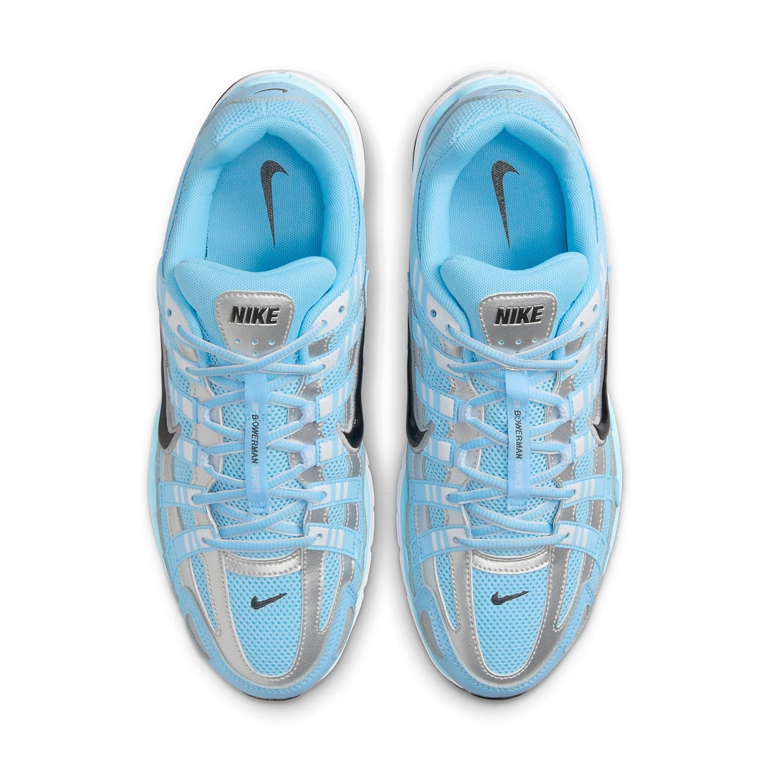 The Nike P-6000 Aquarius Blue is a brightly colored sneaker whose design was inspired by the 2000s running style era. This iteration of the Nike P-6000 has a light Aquarius Blue mesh upper as its base for breathability. An Aquarius Blue leather overlay makes up the toe cap, and leather overlays in Aquarius Blue and silver run vertically down the sides of the shoe from each eyelet. Silver overlays run from the toe to the heel on each side, while the Nike Swoosh appears in black outlined in silver on top. P-6000 branding is seen on the lateral side of the ankle, while another Nike Swoosh appears on the heel collar in black. The tongue also bears Nike branding, while the midsole is blue and white on top of a black outsole. This shoe stands out because of its Aquarius Blue colorway. It dominates the design and makes the shoe a bold statement. The Nike P-6000 Aquarius Blue was released on December 20, 2023, for $110.
