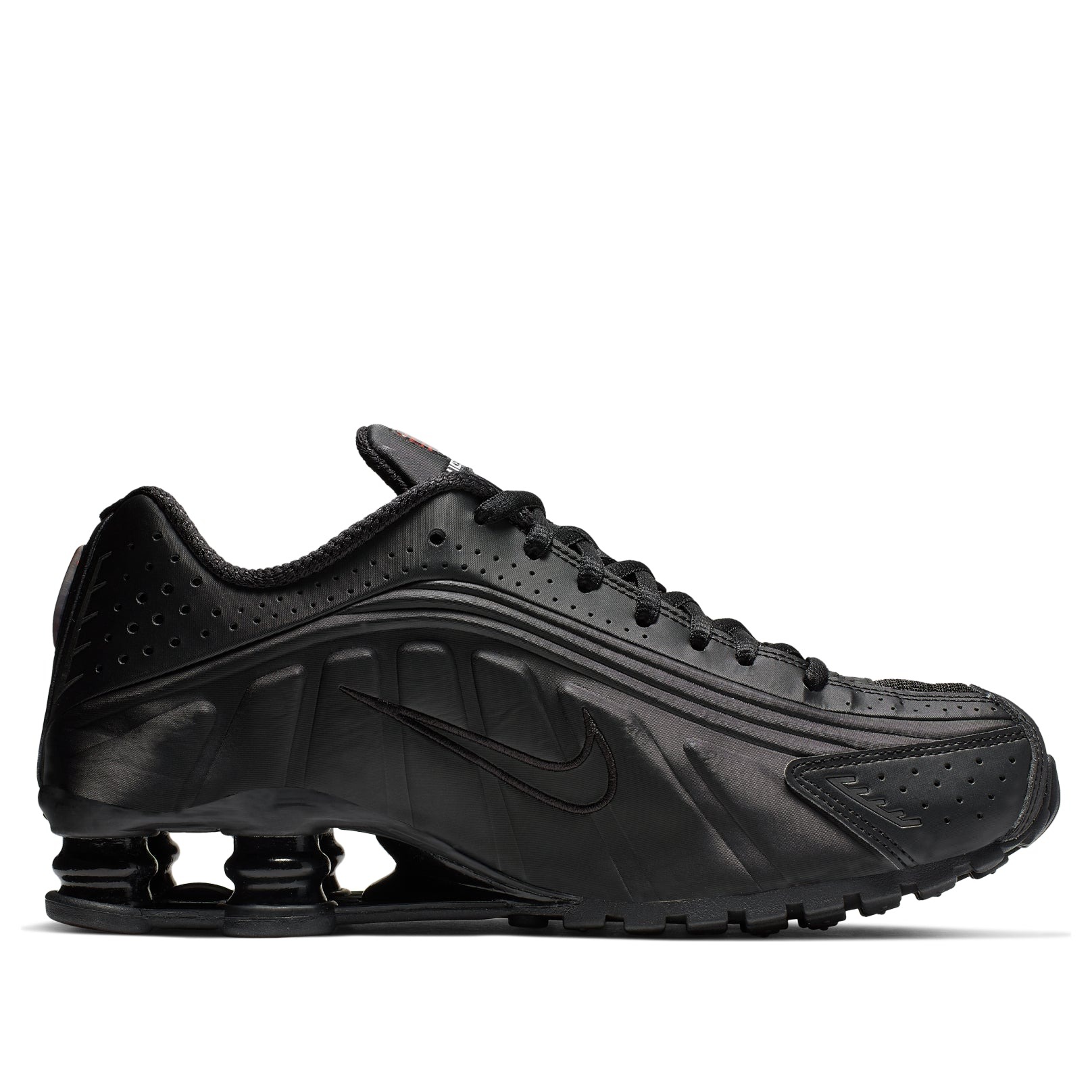 The Nike Shox R4 Black (Women’s) dresses the Shox R4 in an all-black colorway, toning down the sneaker s Y2K design elements.Originally released in 2000, the Shox R4 silhouette has maintained an understated presence in the retro sneaker scene. However, the women’s black iteration replaces the usual bright colorways with a stark black upper and accents in Max Orange. Part of the modified waffle sole, the branding on the tongue, and the line of dots on the heel come in Max Orange. The textile-and-synthetic upper features laser-cut perforations and design lines highlighting the sneaker s molded design. However, the stand-out feature is the Nike Shox column under the heel. It provides shock absorption while distributing weight across the foot.Our experts at Newsole like that the upper is almost identical to the model from 2001, paying homage to the Shox legacy. The women-sized Nike Shox R4 Black (Women’s) was released on April 3, 2024, and sold for $140.