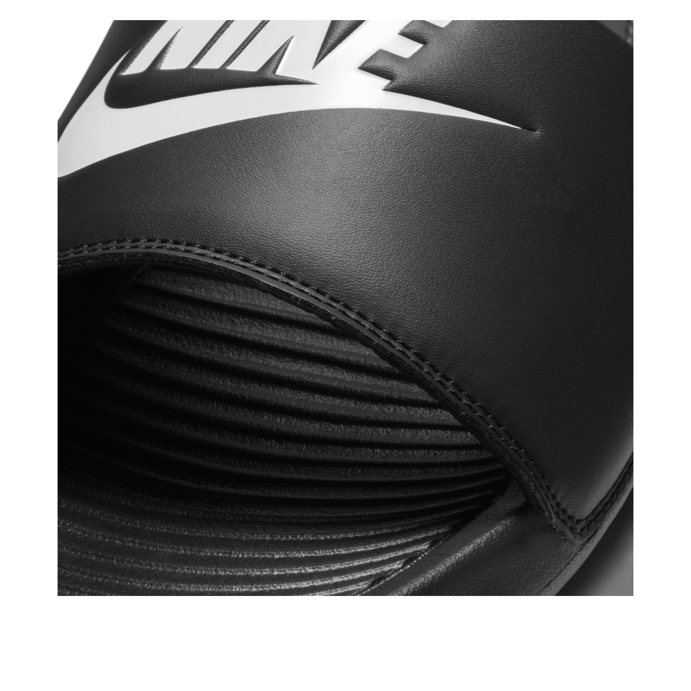 The Nike Victori One Slide Black White is a slip-on sandal with a minimalist silhouette and an all-black construction. „NIKE“ in bold white lettering graces the strap across the forefoot and is the dominant branding detail on the shoe. The molded footbed is lightweight and conforms to the foots shape. The grip pattern in the forefoot and toe area prevents the shoe from slipping off and adds texture to the footbed. A logo tag, which lists sizing and material information, can be found on the underside of the forefoot strap. Its placement doesnt distract from the sneakers minimalist design or all-black aesthetic. Our Newsole experts like that the forefoot strap is made of a soft material that mimics leather and doesnt chaff the foot or add additional weight. The Nike Victori One Slide Black White was released on September 14, 2020, and retailed at a price of $30.