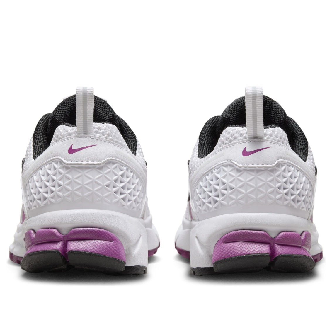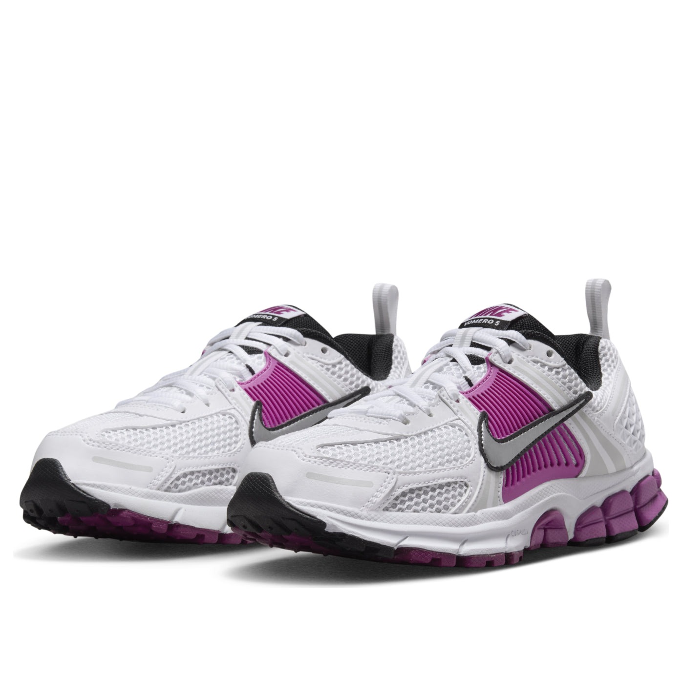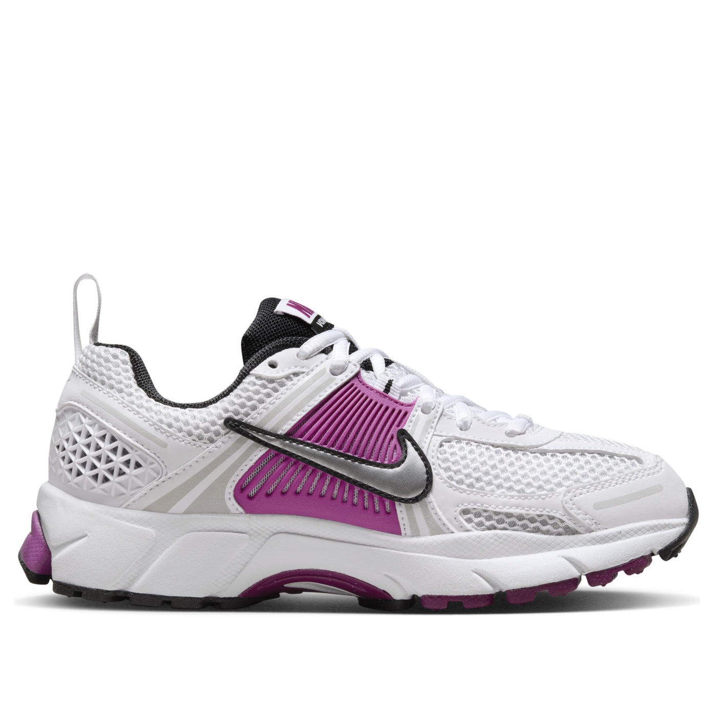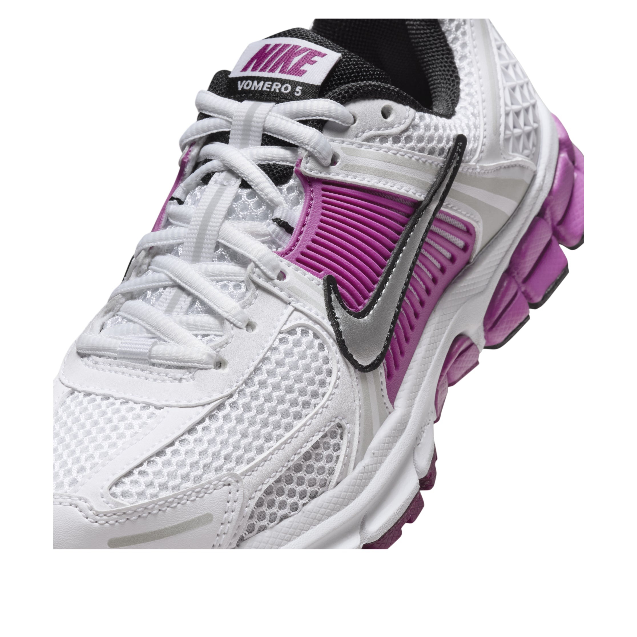 The Nike Zoom Vomero 5 Hot Fuchsia (GS) features a White/Pure Platinum/Hot Fuchsia/Metallic Platinum colorway. This Nike Zoom Vomero 5 was first released for $110.