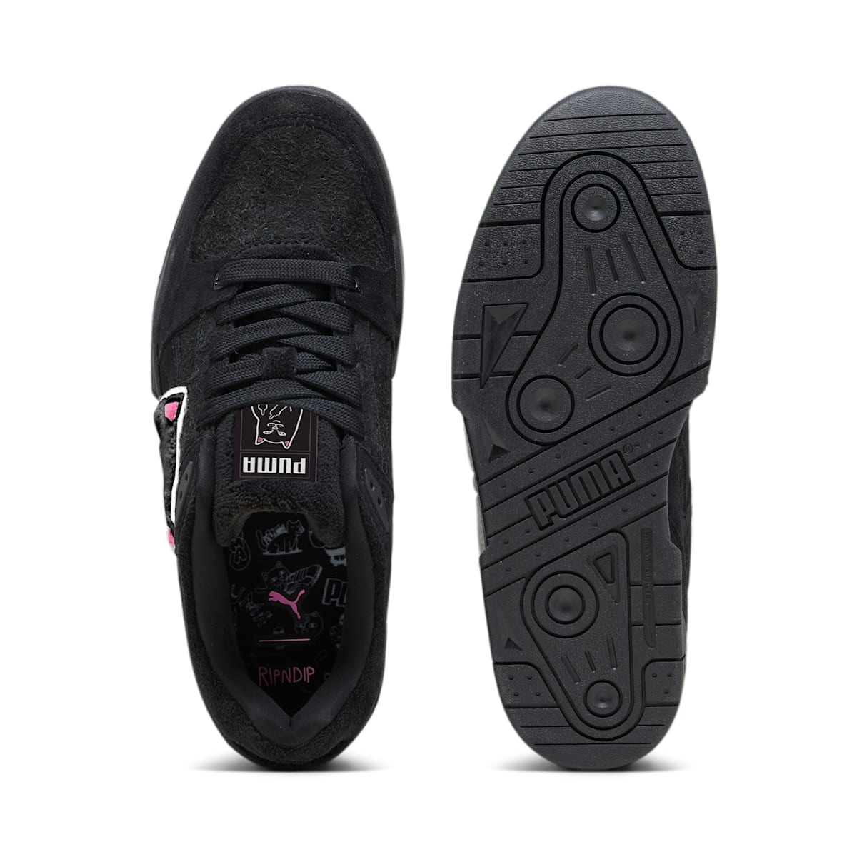 The Puma Slipstream Lo RIPNDIP Lord Nermal Black features a Black/White colorway. This Puma Slipstream Lo was first released for $95 on August 11, 2023.