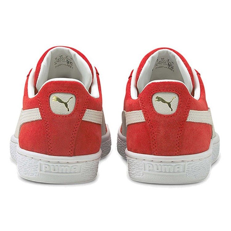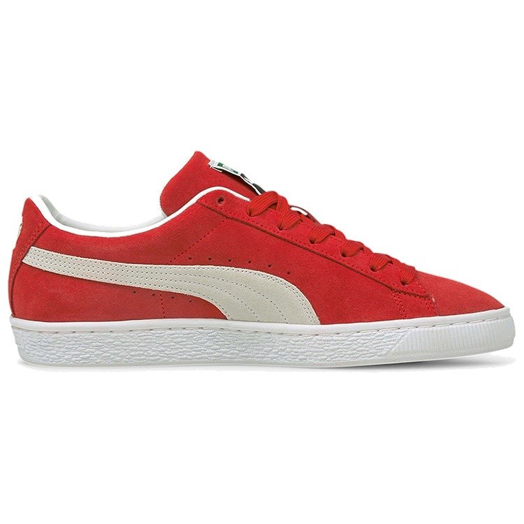 The Puma Suede Classic XXI Red features a High Risk Red-Puma White colorway. This Puma Suede Classic XXI was first released for $70 on February 19, 2021.