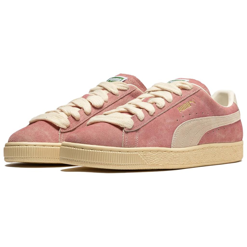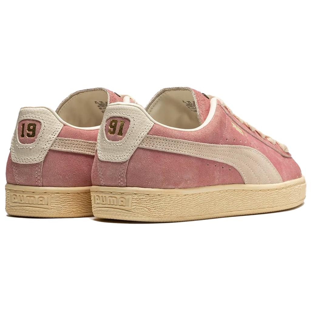 The Puma Suede Rhuigi B Boy is a low-top sneaker released in part of a collaborative effort between Puma and Rhuigi Villase or, the founder of Los Angeles-based luxury streetwear brand, RHUDE.The shoe features a predominantly pink upper, white accents on the laces, and the classic Puma lines that run across the sides. It also has metallic gold accents on the branding details which help to add a touch of luxury to the shoes. The upper is made from suede material while the sole unit features a rubber construction to enhance durability. As for branding, the Puma Suede Rhuigi has Puma text branding on the sides and heel area as well as another logo on the tongue and the number 91 on the heel tab.One thing we love about the Puma Suede Rhuigi B Boy is that it comes with a padded insole to provide a soft cushion for your feet. The shoes were released for retail in April 2023 priced at $120.