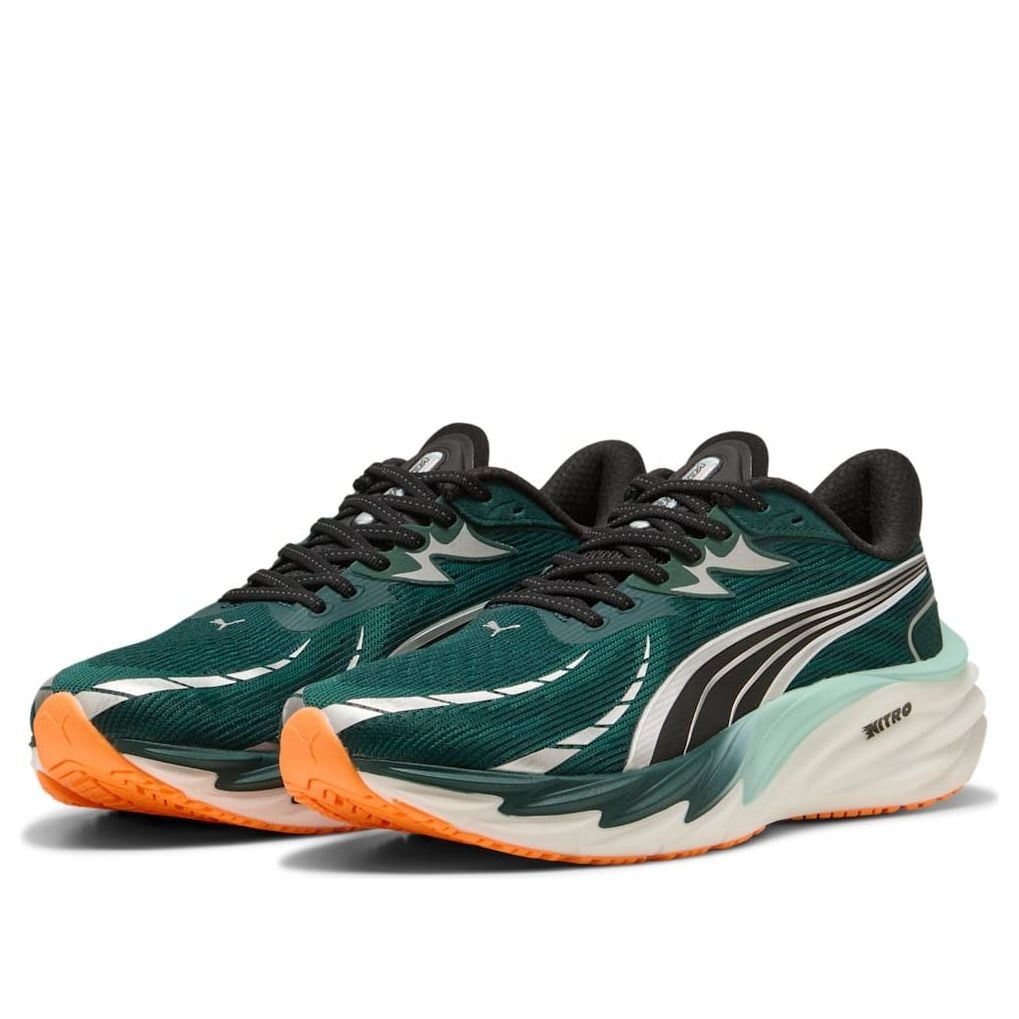 The Puma Velocity Nitro 4 Green Terrain Heat Fire features a Green Terrain/Heat Fire colorway. This Puma Velocity Nitro 4 was first released for $140 on October 01, 2025.