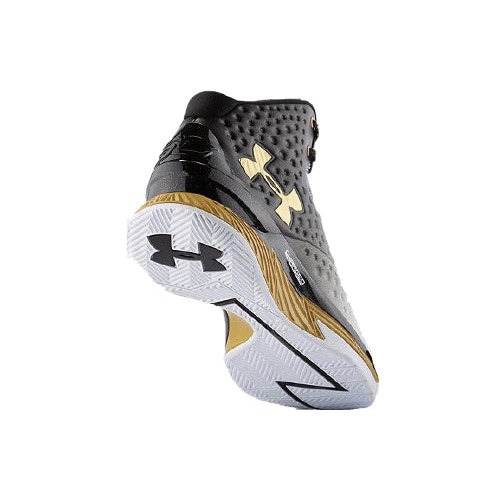 The Under Armour Curry One „MVP“ is arguably the most important colorway in Stephs first signature sneaker series with UA. Not long after Stephen Curry was announced as the Most Valuable Player award winner for the 2014-2015 NBA Season, Under Armour announced the release of a special black and gold edition of the UA Curry One to celebrate Stephs accomplishment. Like all Curry One models, the MVP Curry One features a dimpled anaFoam upper that is lightweight and breathable with a midsole equipped with UAs popular Charged Foam cushioning. Before the MVP Curry One hit shelves of retail or any webstore, the MVP himself laced up the regal colorway in the playoffs against the Memphis Grizzlies in May of 2015. However, to build the perfect amount of hype, Steph wore a player exclusive version of the Curry One MVP in Game 2 of the NBA Finals against LeBron James and the Cleveland Cavaliers. The player exclusive version featured textual graphics spread across the heel, while the released pairs stuck with the simplified black and white upper with gold accents and midsole. Needless to say, the Under Armour Curry One „MVP sold out quickly upon release and became one of the most sought after versions of Stephs first signature sneaker.