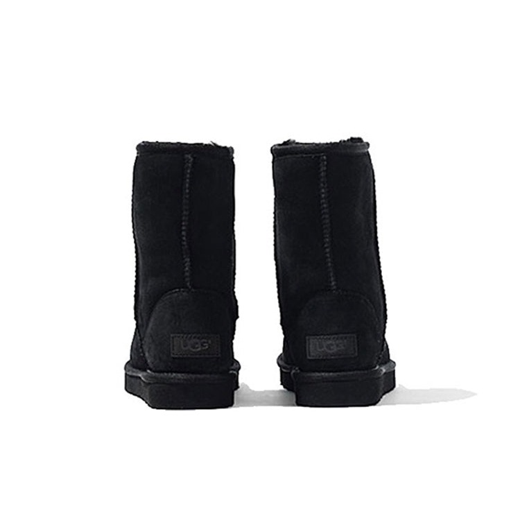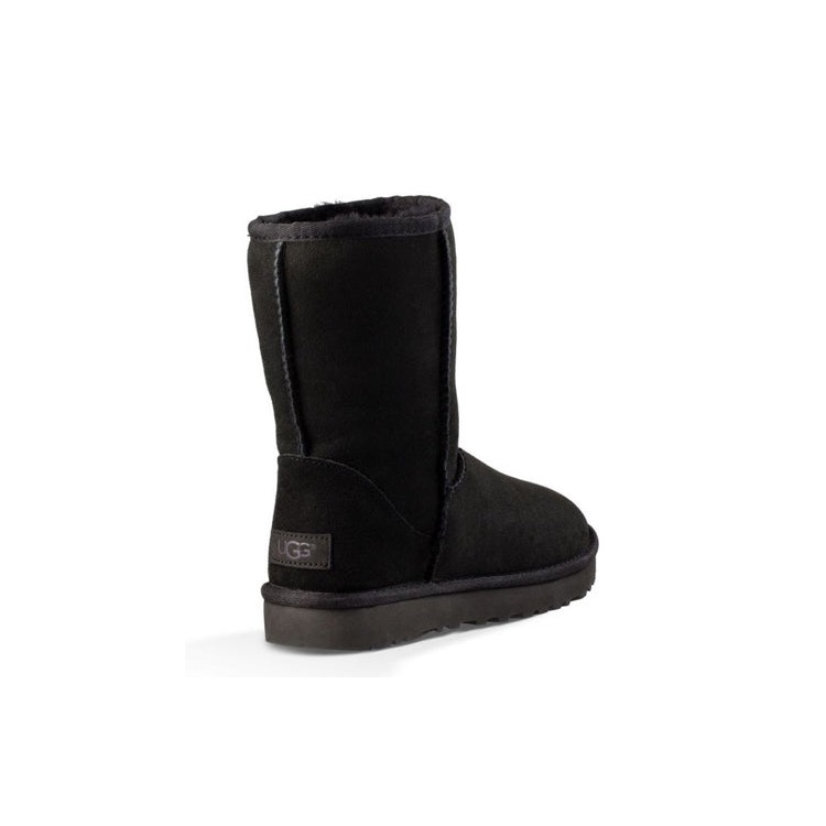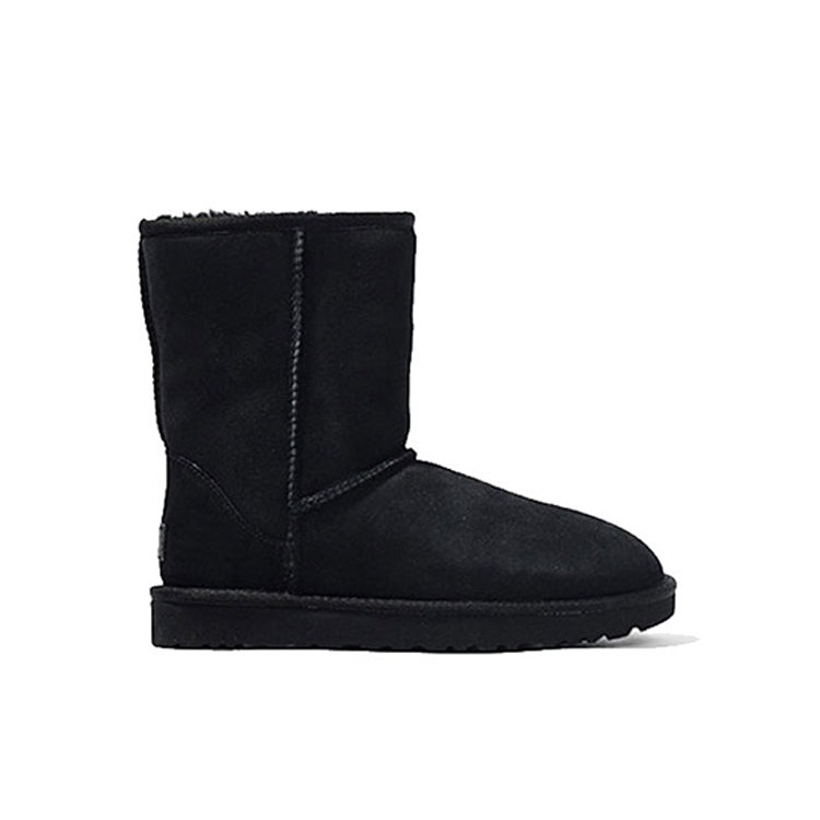 The UGG Classic Short II Boot Black (Women’s) combines a vintage look with black suede uppers and comfort afforded by sheepskin lining.This Classic Short II Boot sits on the UGG Treadlite EVA sole made for lightweight footwear. A piping sits between the shoe and the midsole. These women s shoes come in a one-piece construction, with the upper and quarter panels merging. However, the shoe has a visible polyester binding, most notably on the tongue border and on the side seam. There is also a binding running down the shaft to the sole. On the counter is a leather sticker embossed with a UGG branding. The sheepskin lining is slightly visible from the exterior. It covers the shaft to meet a wooly insole.What UGG Classic Short II Boot Black (Women’s) features make it stand out? We love the solid construction of this shoe, including the topical pre-treated upper, which is stain and water-resistant. Released on February 1st, 2022, this shoe had a price of $170.