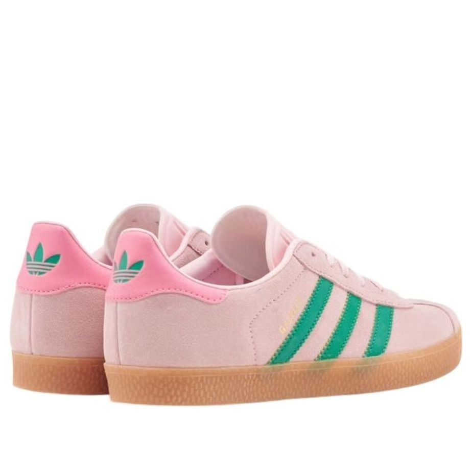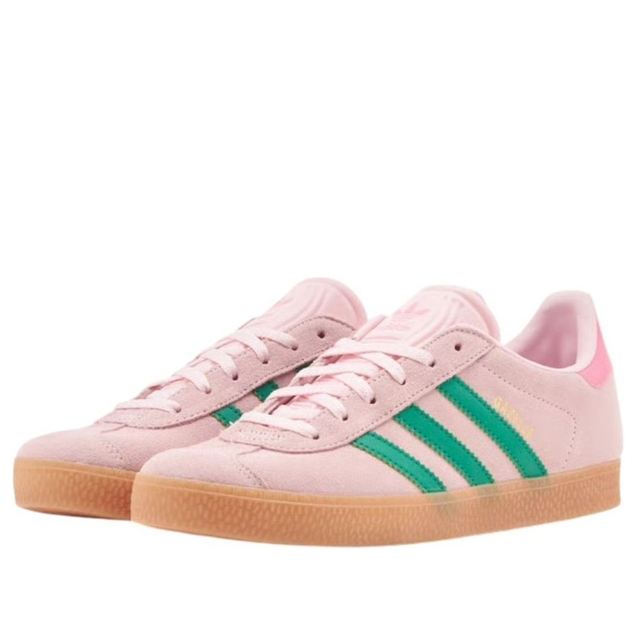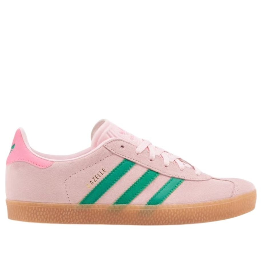 The adidas Gazelle Clear Pink Court Green (GS) features a Clear Pink/Court Green/Bliss Pink colorway. This adidas Gazelle was first released for $85.