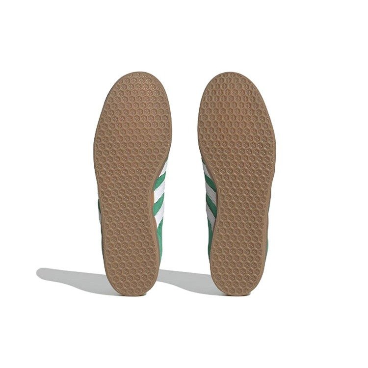 The adidas Gazelle Court Green Footwear White is a combination sport and streetwear shoe that boasts a vibrant colorway of Footwear White, Court Green, and Gum 4. The upper is made of a soft nubuck material in Court Green that gives the sneaker a velvety and soft finish. Providing contrast, the iconic 3-Stripes logo running up the side of the shoe, the lining, and the heel tab come in bright Court White. Gazelle in yellow-gold lettering can be found along the serrated 3-Stripes logo, while the Court Green trefoil logo is located on the heel tab. The gum rubber outsole boasts a waffle-like pattern that provides extra traction and grips the ground. Something our experts like is the branded insole, which reminds the wearer of the sneakers adidas legacy. The adidas Gazelle Court Green Footwear White was released on May 15th, 2023, and retailed at $95.