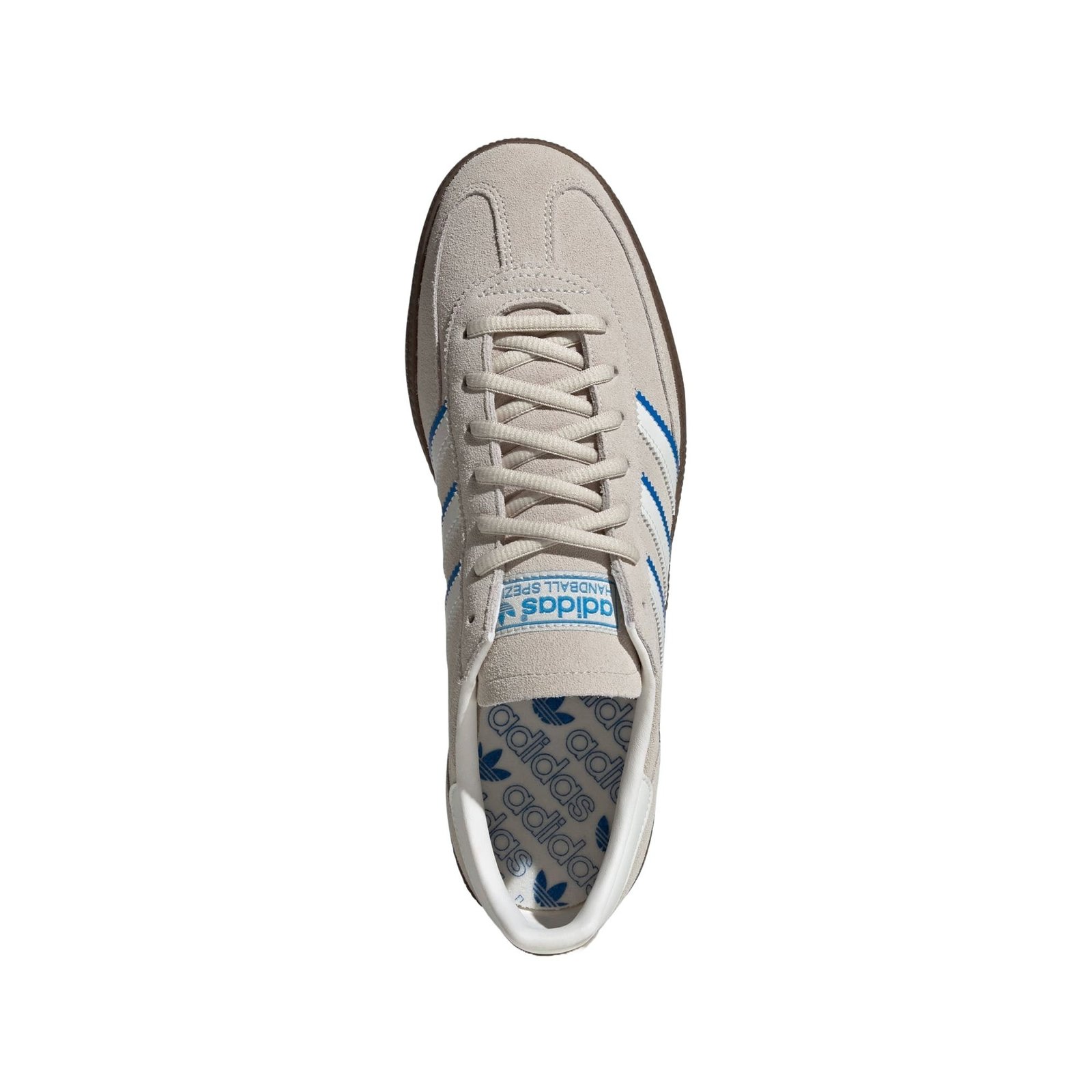 The adidas Handball Spezial Aluminum Bright Blue is a lifestyle shoe with a low-profile in an Aluminum Bright Blue colorway.Taking inspiration from handball shoes and style, this adidas Handball Spezial silhouette oozes vintage appeal with a modern twist. The synthetic suede upper is predominantly an Aluminum color. The iconic three stripes make an appearance on both side panels in Cloud White layered upon bright blue, all with jagged edges. SPEZIAL branding and a trefoil are imprinted in metallic gold next to the stripes on the lateral side. Matching Aluminum-colored laces, a gum rubber outsole, and blue branding on the tongue complete this shoe.Our experts think the standout feature of this sneaker is the minimalistic aesthetic, which gives it a universal look that can dress outfits up or down. When the adidas Handball Spezial Aluminum Bright Blue was originally released on April 1, 2024, it sold for $100.