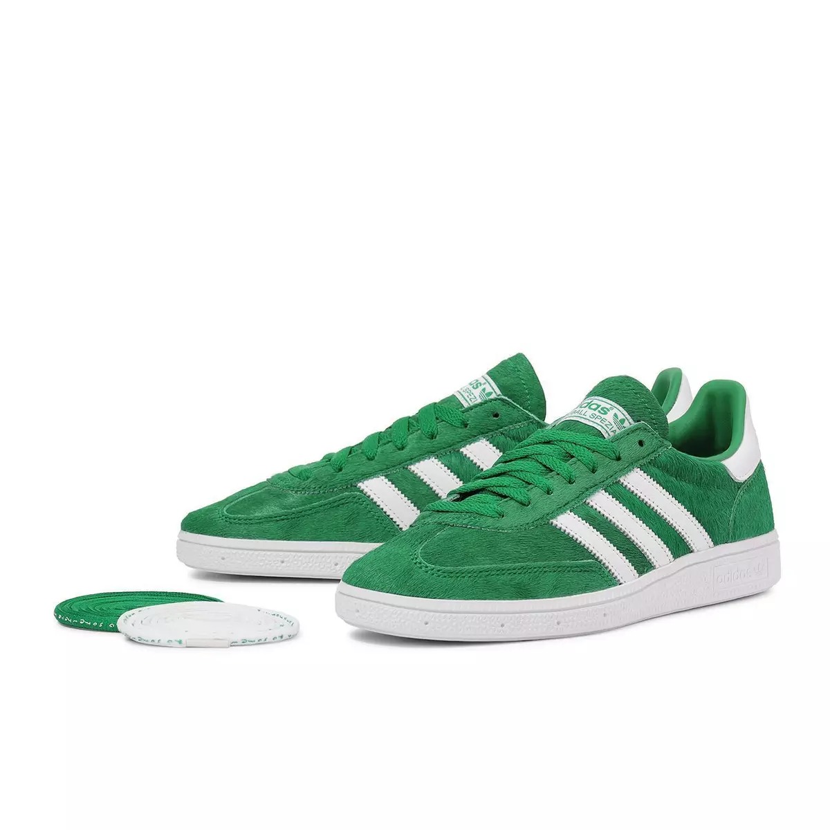 The adidas Handball Spezial Pony Hair Green Cloud White features a Green/Cloud White/Cloud White colorway. This adidas Handball Spezial was first released for $100.