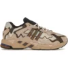 The adidas Response CL Bad Bunny Paso Fino is part of a collaboration between adidas and the Puerto Rican singer Bad Bunny. The sneaker takes the classic Response CL silhouette and incorporates Wild West elements inspired by Bad Bunnys love of Western films. The Ecru Tint, Bronze Strata, and Earth Strata colorway takes cues from the desert environment, leather, rust, and rich earth. Overlapping shapes and curved lines in leather across the mesh upper evoke desert formations such as mountains and rock outcroppings. The 3-Stripes cross the side panel, connecting the midsole and lace cage. The sneaker features the recognizable Response CL rubber outsole known for its bulky appearance and cushioning support. Our Newsole experts love the splashes of purple on the tongue and midsole, which represent the pops of color found in the otherwise monotone desert landscape. The adidas Response CL Bad Bunny Paso Fino was released on October 28, 2023, and retailed at $160.