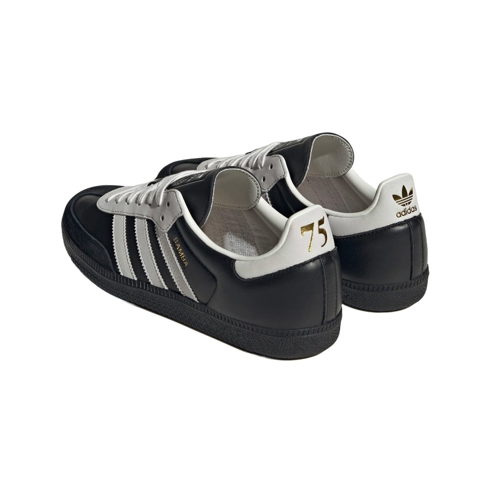 The world-renowned sneaker company chose the adidas Samba OG 75th Anniversary Pack Black to celebrate its 75th anniversary because the Samba debuted in 1949, the same year the company launched.For this celebratory shoe, the base is composed of premium tumbled black leather with a black suede T-toe overlay. Smooth white leather is used for the signature serrated side-panel 3-Stripes, as well as the eyestay and heel overlays. The tongue is black leather, while the sock liner is white leather. Gold lettering forms the Samba branding on the outer side panel, as well as the 75 and trefoil branding that hits each heel tab. The textured black foam midsole rides on a black rubber outsole that sports a pattern designed to absorb impact and provide grip.The detail we love the most about this anniversary pair of sneakers is the dates in gold on the sock liner, 18.08.1949, the company s debut date, and 18.08.2024, adidas s 75th birthday. The adidas Samba OG 75th Anniversary Pack Black was released on August 16, 2024, for $110 retail.