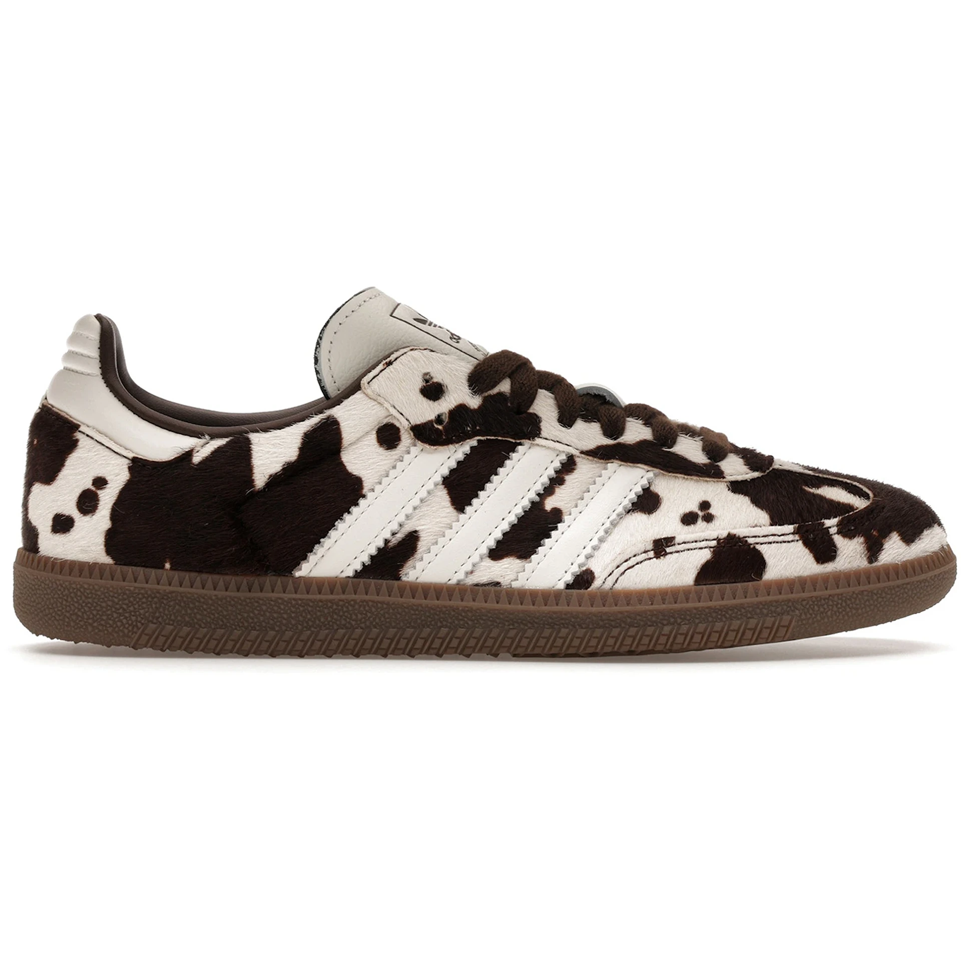 The adidas Samba OG Cow Print Dark Brown White (Womens) features a Dark Brown/Cloud White/Gum colorway. This adidas Samba OG was first released for $110 on November 01, 2025.