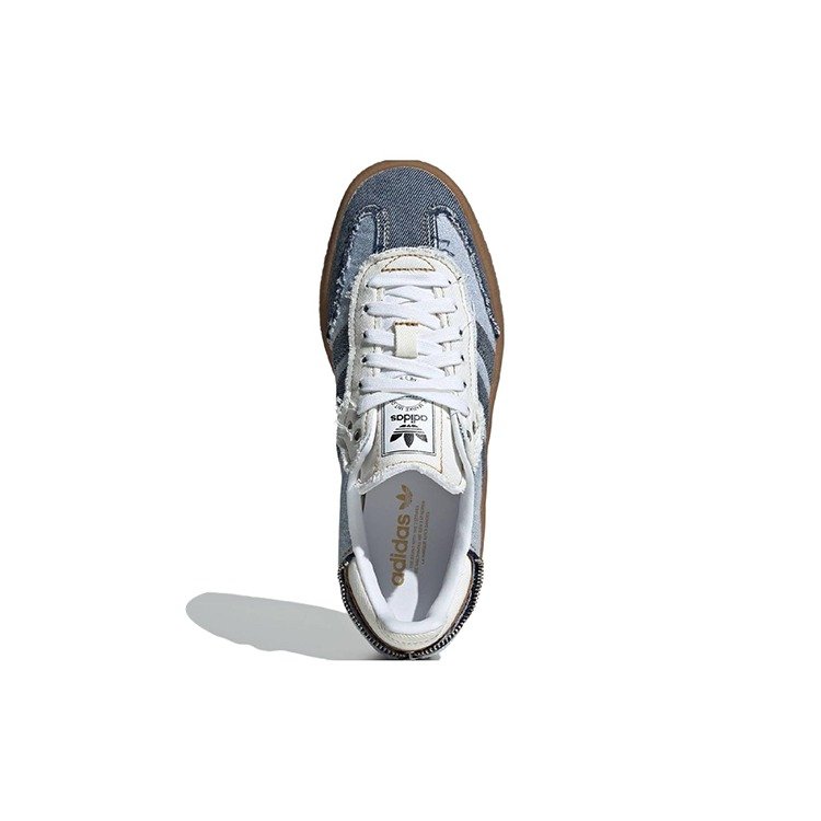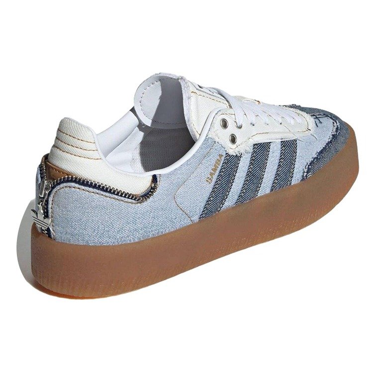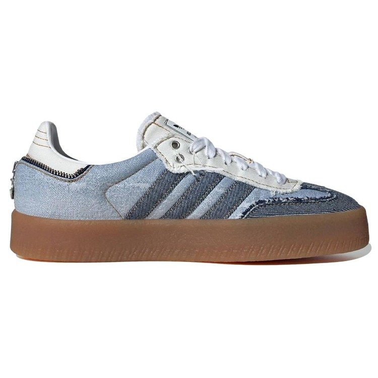 The adidas Sambae atmos Pink Denim (Women’s) adds a contemporary design to the classic Samba silhouette and a tri-toned denim construction.The upper features faded denim as the base, distressed, dark indigo denim for the 3-Stripes logo, and the oversized T-shaped toe overlay. Another detail that makes this low-top sneaker stand out is the zipper on the heel. Although it s just for decoration, it appears to zip the heel closed. The heel tab, tongue, and panels around the tongue are made from white denim with frayed edges. Like other Sambae models, the atmos Pink Denim version sits on a thick gum rubber sole that s larger than the classic Samba s rubber outsole.Our experts at Newsole like that the outsole comes in traditional gum instead of a faded or orange gum tone. The women s size adidas Sambae atmos Pink Denim (Women’s) was released on April 13, 2024, and retailed at $110.
