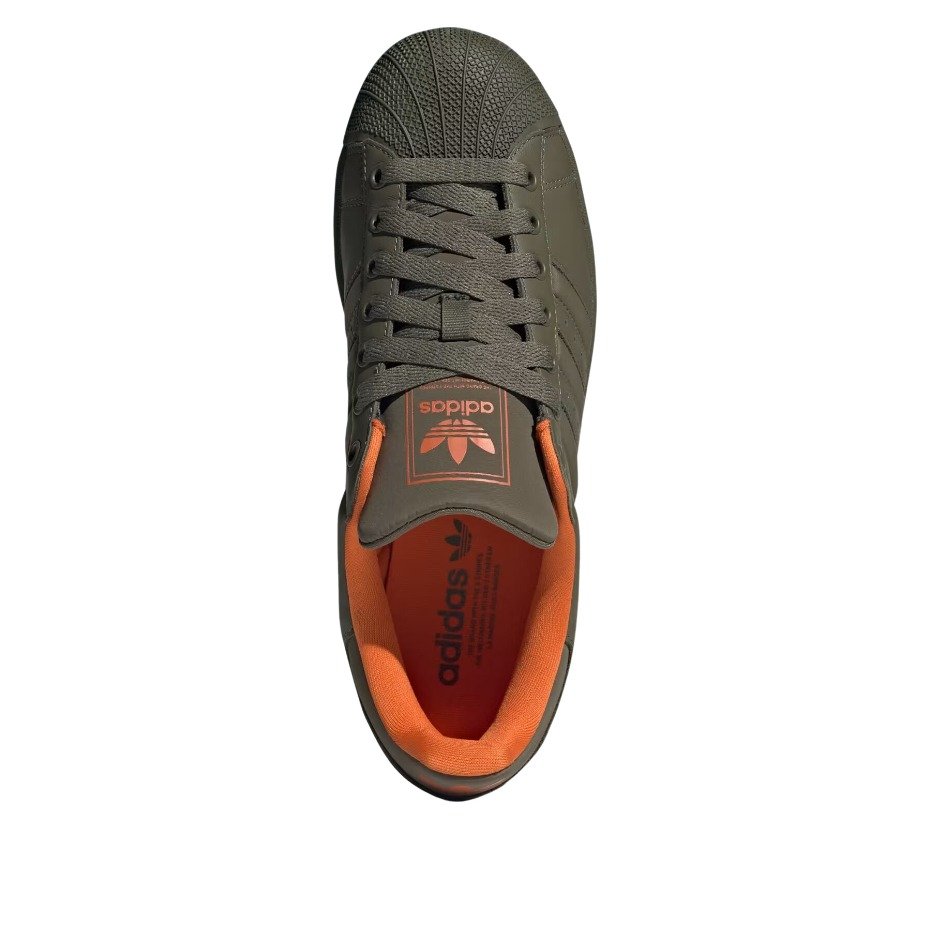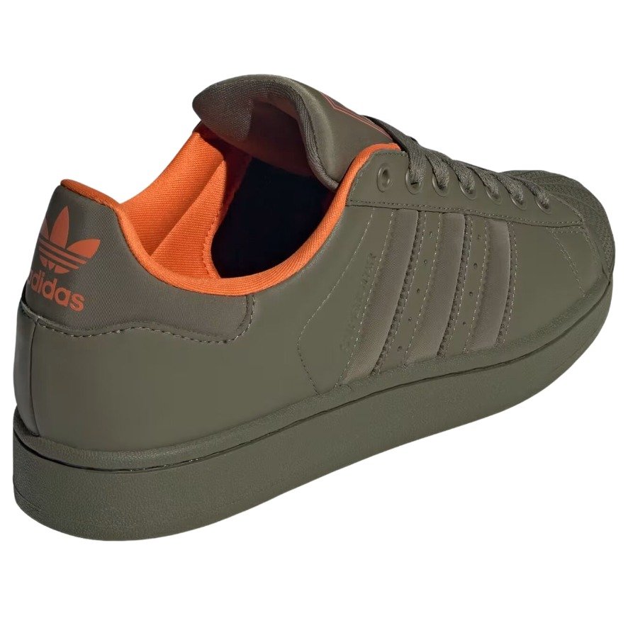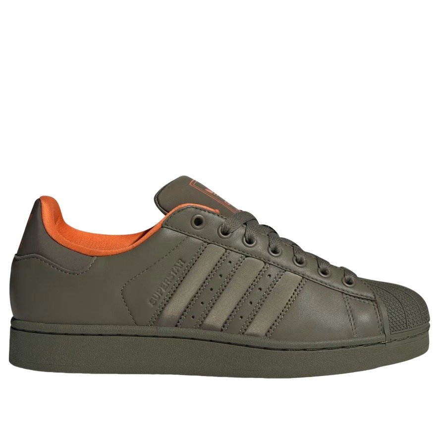 The adidas Superstar II Olive Strata Orange features a Olive Strata/Olive Strata/Orange colorway. This adidas Superstar II was first released for $95.