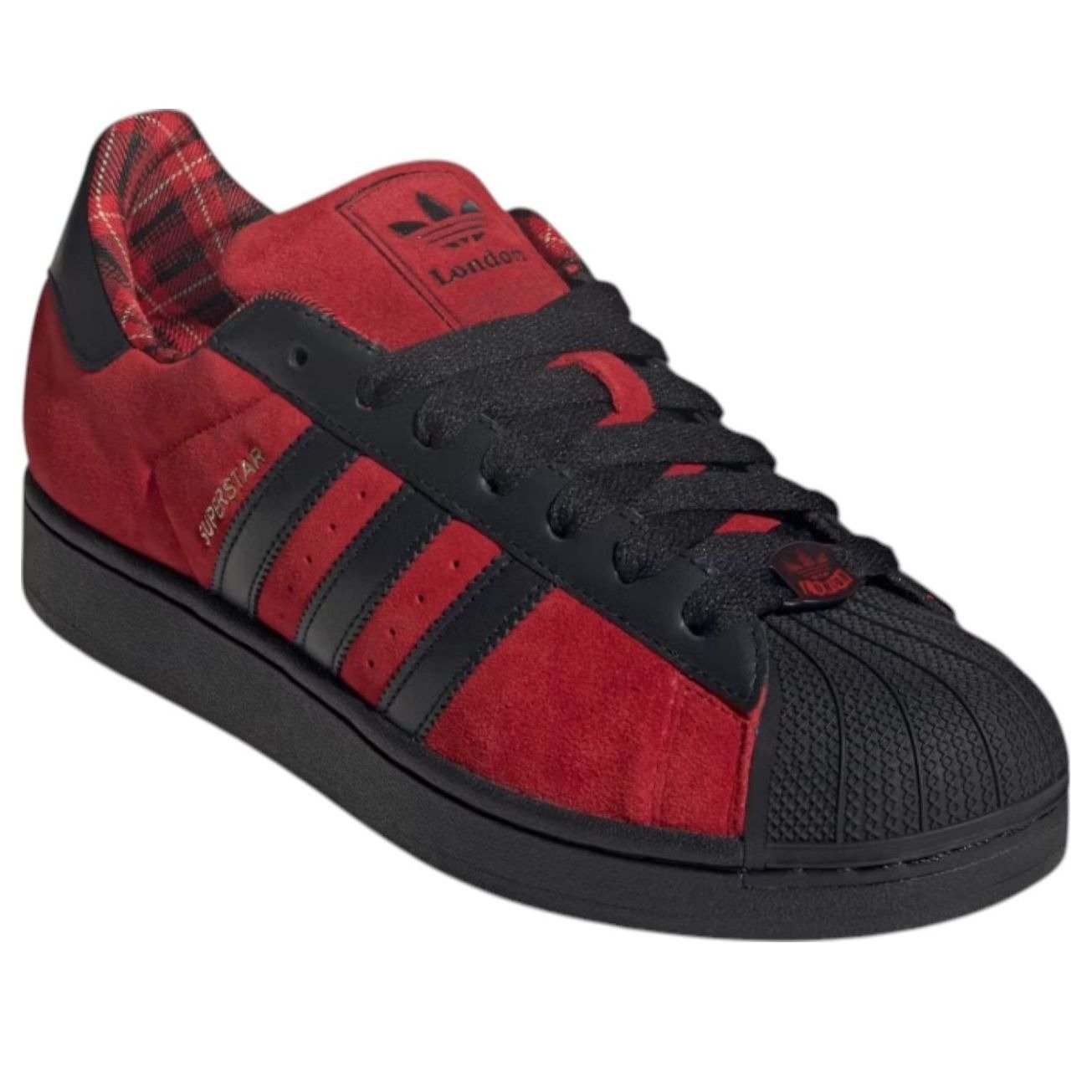 The adidas Superstar London features a Better Scarlet/Core Black/Matte Gold colorway. This adidas Superstar was first released for $100.