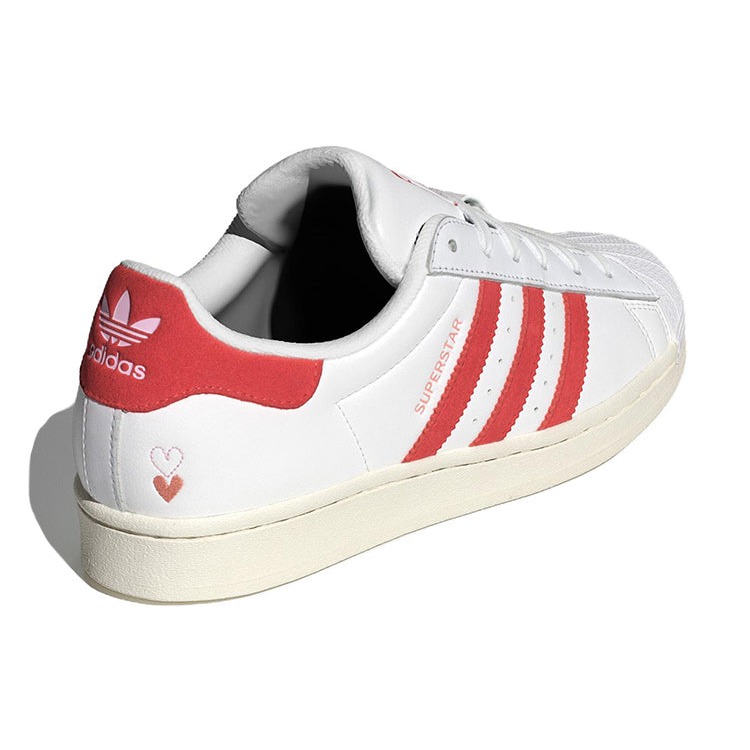 The adidas Superstar Valentine’s Day (2024) (Women’s) features a Cloud White/Bright Red/Wonder Clay colorway. This adidas Superstar was first released for $100 on January 01, 2024.