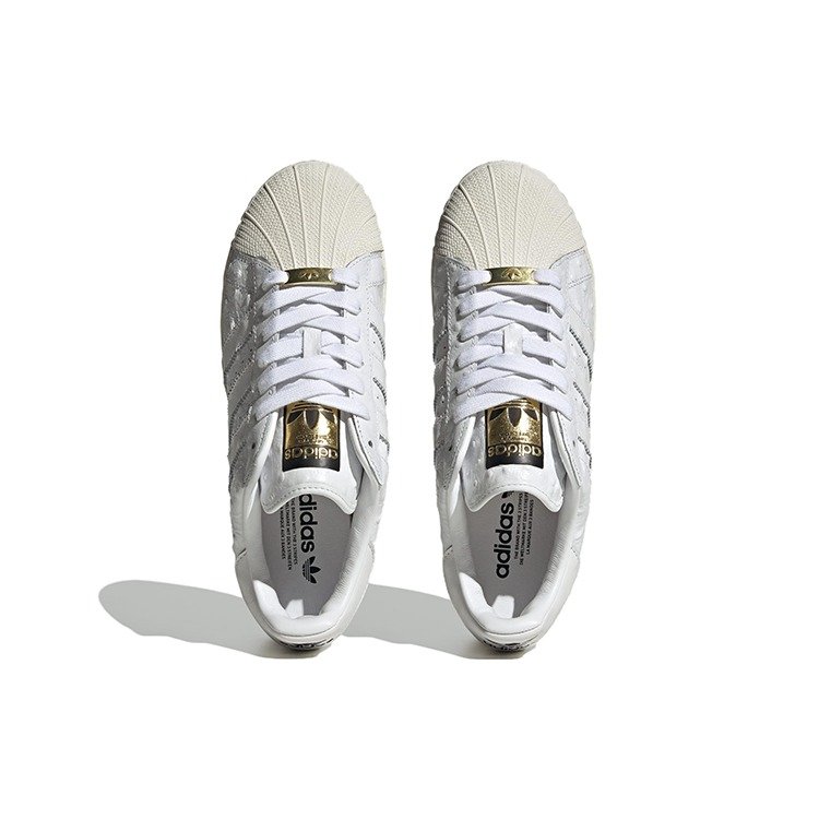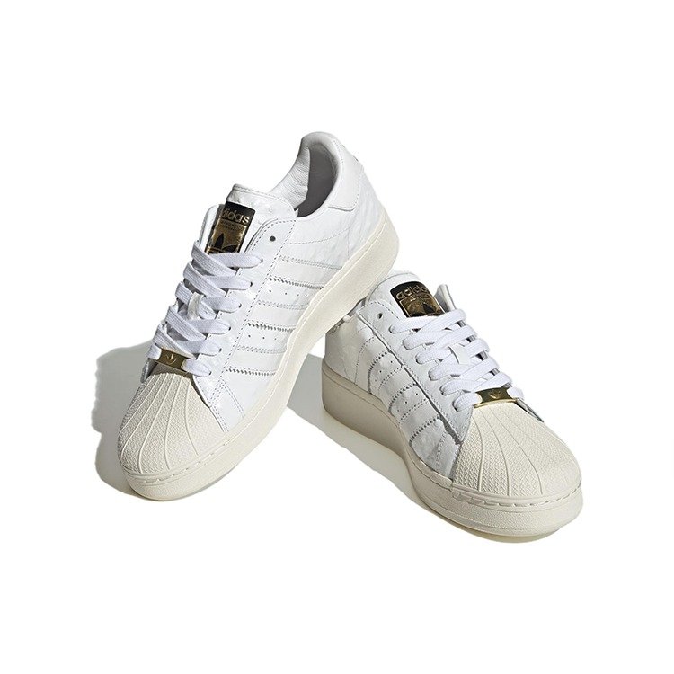 The adidas Superstar XLG Ostrich Cloud White features a Cloud White/Cloud White/Gold Metallic colorway. This adidas Superstar XLG was first released for $145 on August 30, 2023.