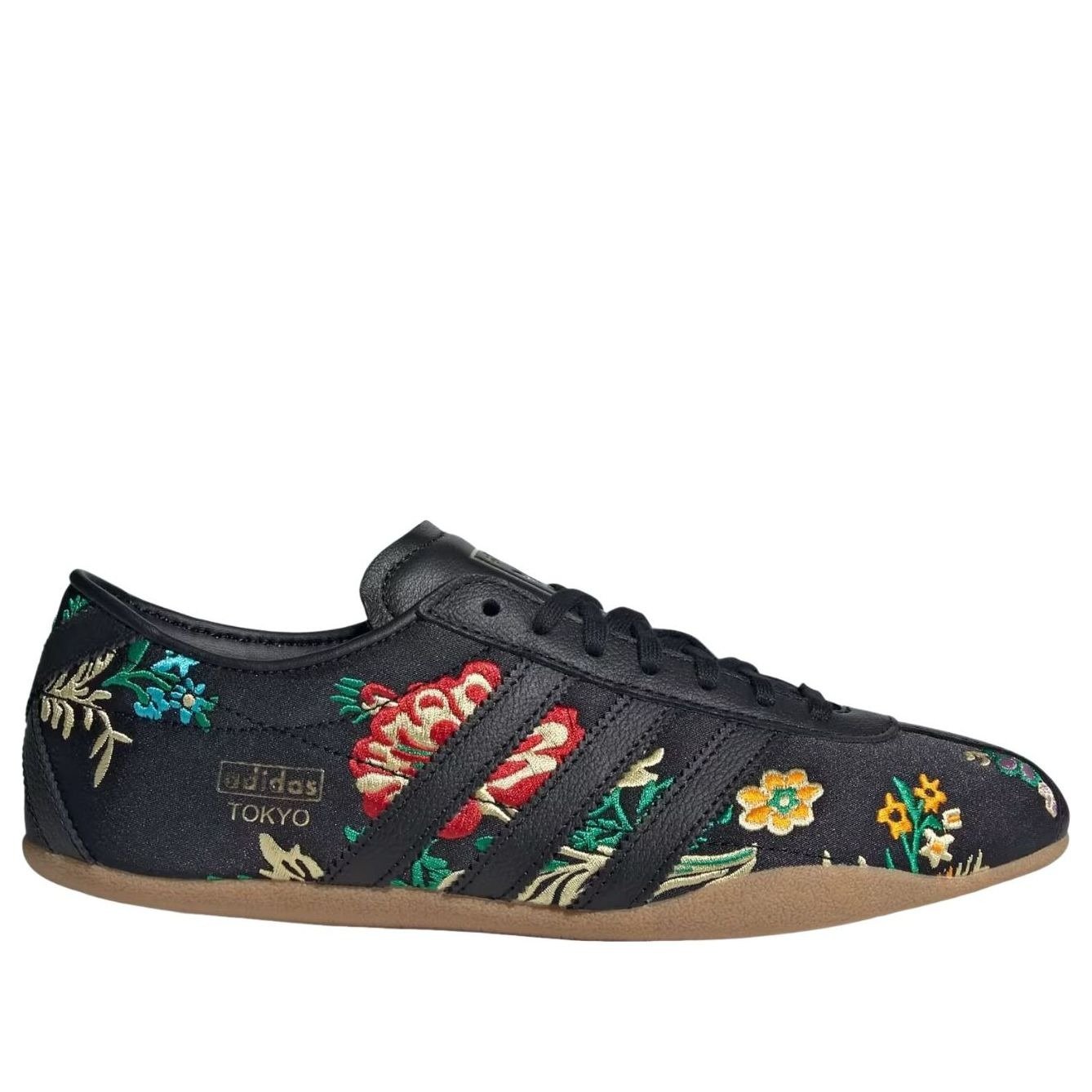 The adidas Tokyo Black Floral Embroidery (Womens) features a Core Black/Gold Metallic/Gum Four colorway. This adidas Tokyo was first released for $100 on July 18, 2025.