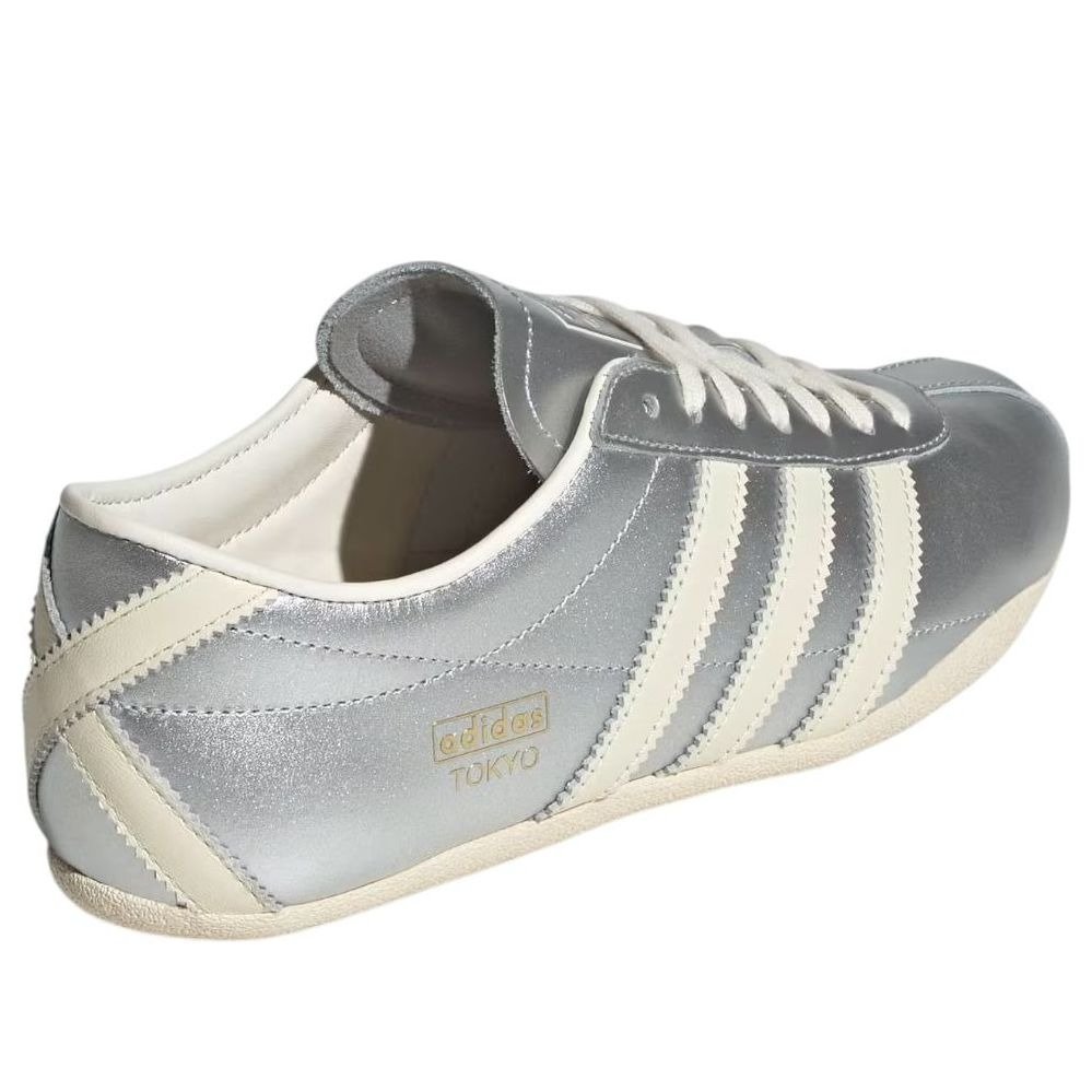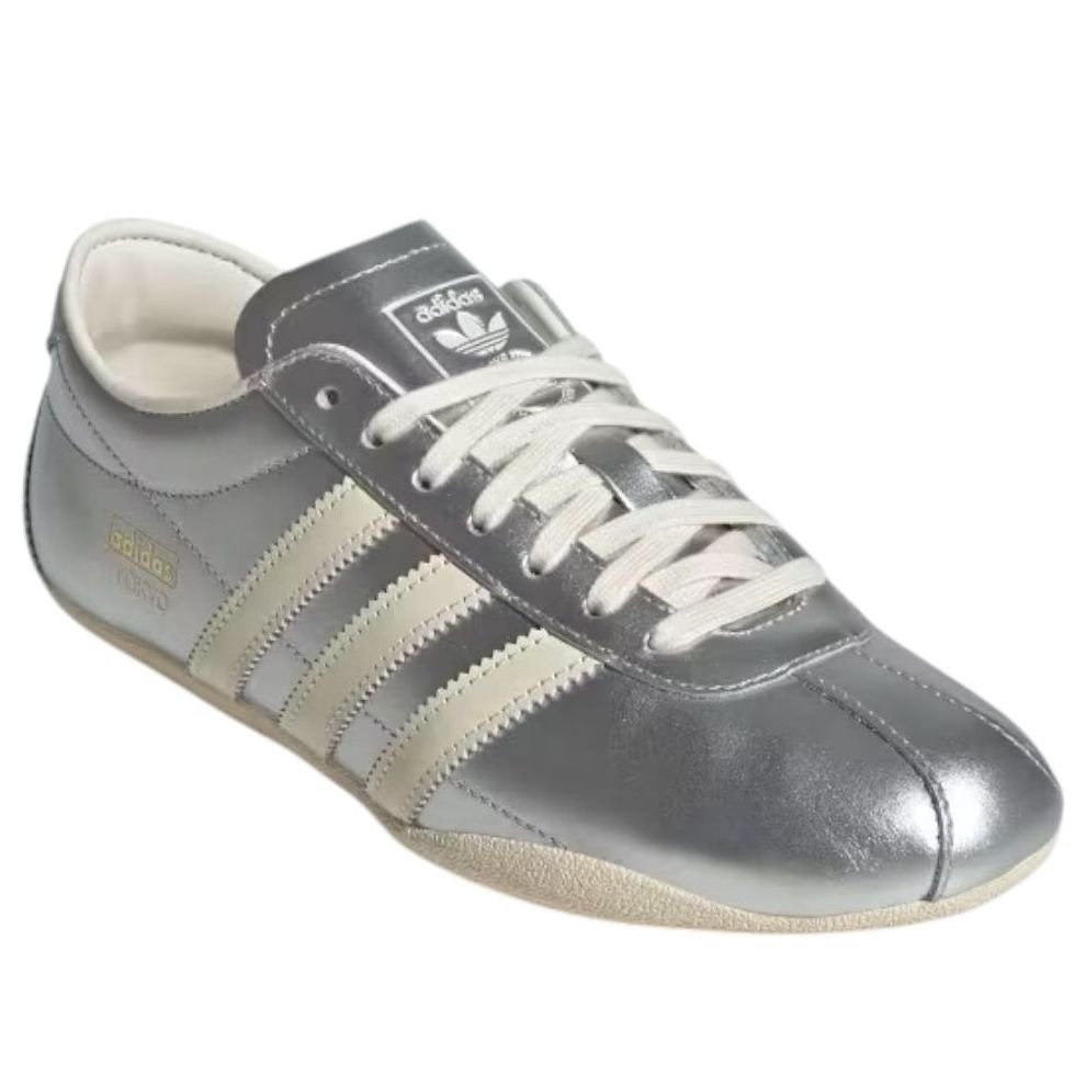 The adidas Tokyo Silver Metallic Cream White (Womens) features a Silver Metallic/Cream White/Gold Metallic colorway. This adidas Tokyo was first released for $90 on July 22, 2025.