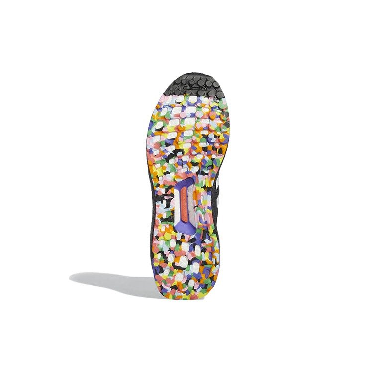 The adidas Ultra Boost 5.0 Kris Andrew Small Pride Collection is a shoe released as part of a collaboration with queer Australian artist Kris Andrew Small. This iteration of the adidas Ultra Boost 5.0 is constructed with a Primeknit upper in black and white, with tiny dots of colors from the LGBTQIA+ flag sprinkled in. The weave pattern differs on different shoe parts for a nice color-blocking effect. The adidas three stripes appear in white on each side on top of black support cages. The heel is supported by black supports on each side, and Ultra Boost branding is in dark blue on the lateral side. The tongue sports Kris Andrew Small branding, while colorful adidas branding is on the laces. The shoe sits on a black Ultra Boost midsole and a multicolored outsole. Our favorite thing about this shoe is the specks of color that subtly fashionably incorporate the LGBTQIA+ flag. The adidas Ultra Boost 5.0 Kris Andrew Small Pride Collection was released on May 27, 2022, and retailed for $190.