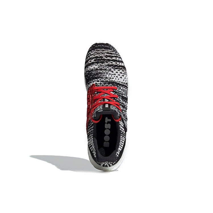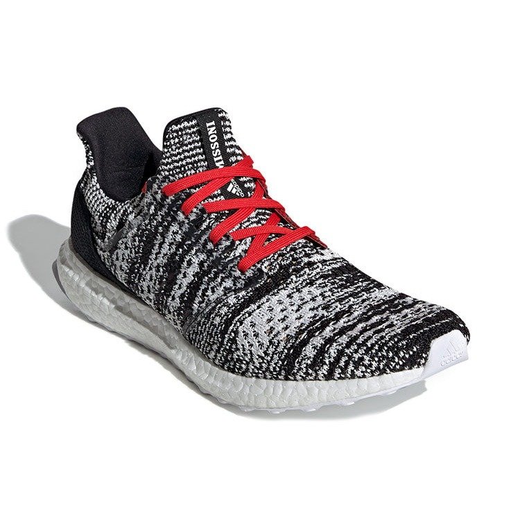 The adidas Ultra Boost Clima Missoni Black is part of the colorways released in the Clima Ultra Boost line, through the partnership of Missoni and adidas brands. The Clima Missoni Black Ultra Boost features a PrimeKnit construction on the upper, with differently colored three stripe cages on the sides and front lace-up fastening. The PrimeKnit textile is adorned with black and white color patterns, while accents of red cover the cotton laces and their outer cages. In addition, matte black embellishes the sueded heel counter. Branding elements are enhanced by the co-branded logo patch on top of the tongue and the Boost emblem on the insoles. Underfoot, the white Boost foam midsole and ridged Continental Rubber outsole completes the sneaker s aesthetics. Something our experts love about this sneaker is the multicolored design, which combines red, white, and black color schemes, striking an ideal balance between shouting and overwhelming. The adidas Ultra Boost Clima Missoni Black debuted on April 25th, 2019, and retailed $250.