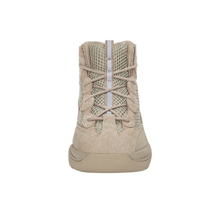 Designed by Kanye West, the adidas Yeezy Desert Boot Rock (Kids) shoe is a high-function sneaker and boot hybrid that brings extreme fashion and streetwear credibility to any self-aware little urban adventurer. Chunky, bold, and highly on-trend, the Rock (Kids) adidas Yeezy Desert Boot is a high-top structure with sneaker sensibilities and boot functionality. Made from primarily canvas and suede, the earth-toned colorways add a rugged look to the durability and toughness kids shoes need. Cushioned insoles and high-traction outsoles give all-day wearability and comfort, and a simple lace-up enclosure provides ankle support. Like all of Kanye West s Yeezy footwear designs, the lack of logos put minimalism and craftsmanship first. This shoe is no different, with a refined simplicity, monotone coloring, and simple line work driving the aesthetic of the design, they are good-looking and hard-working in one. We love the uniqueness these shoes bring to kids footwear, making fashion as much a priority as durability and comfort. The adidas Yeezy Desert Boot Rock Kids was released on 14 September 2019, priced at $130.