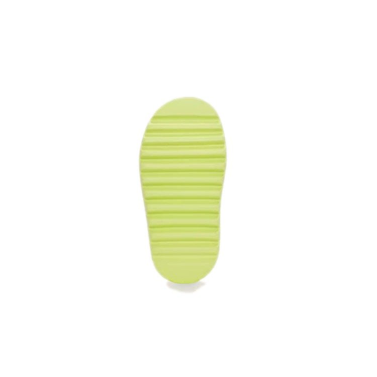 The adidas Yeezy Slide Glow Green (Kids) was launched as part of the kids wear in the sports collection of the adidas Yeezy Slide Glow series. The adidas Yeezy Slide Glow Green (Kids) is a product of lightweight injected EVA foam material featuring a Glow Green colorway throughout. This slip-on shoe has a bigger front upper with an opening that covers the front part of the foot, its grooves are deep and horizontal on the sole. The footbed features a small trefoil logo that completes the design. The adidas Yeezy Slide Glow Green (Kids) was released on September 6, 2021 at a retail price of $45.
