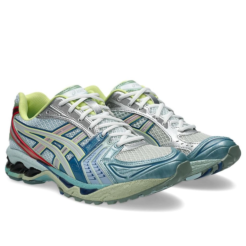 The ASICS Gel-Kayano 14 Facetasm Organic Beauty features a Green/Blue/Pink/Silver colorway. This ASICS Gel-Kayano 14 was first released for $195 on October 11, 2025.