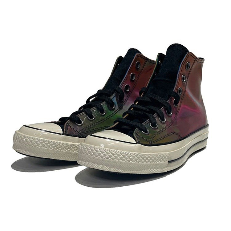The Converse Chuck Taylor All Star 70 Hi Spectrum Iridescent features a Black/Multi-Color/White colorway. This Converse Chuck Taylor All Star 70 Hi was first released for $90 on March 01, 2021.