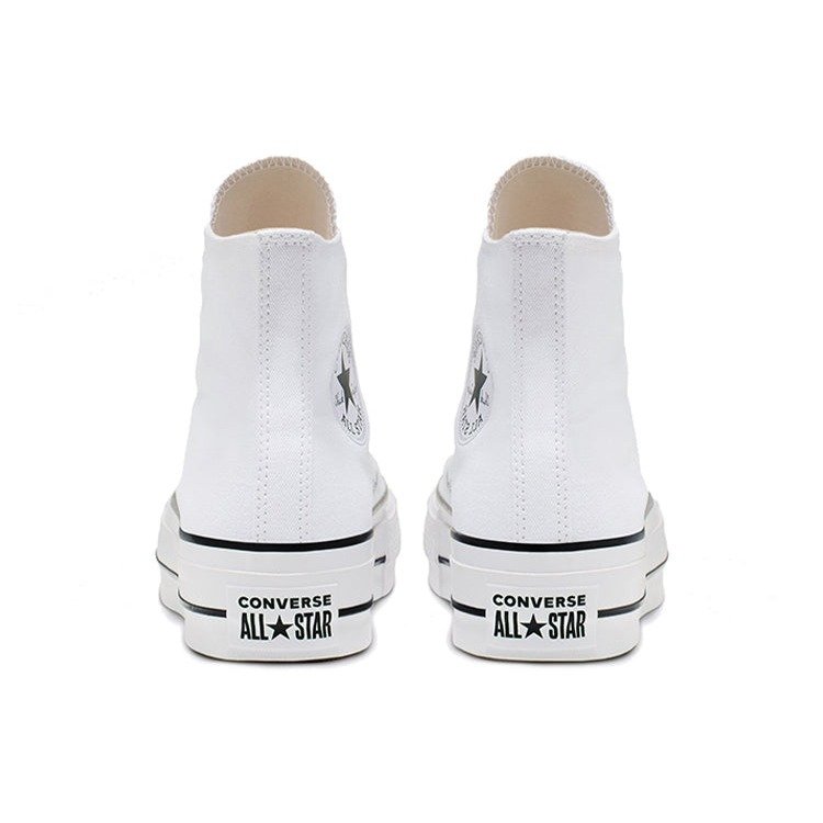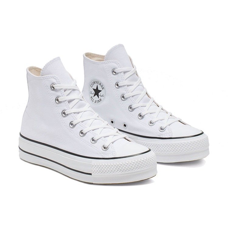Converse Chuck Taylor All-Star Hi Platform is a white and black colorway top lift women s sneakers.The Converse Chuck Taylor All-Star Hi Platform has a white cotton canvas upper with a lace-up closure. It also has white lace with metallic eyelets. There s also a durable white rubber sole that has a protective toe cap made of rubber. The insole is cushioned, and a stranded outsole for traction. It also features two eyelets from the inner midfoot and two black rubber stripes on the sole that complete the design.The white Converse Chuck Taylor All-Star Hi Platform debuted at a retail price of $70 on 27th December 2021.