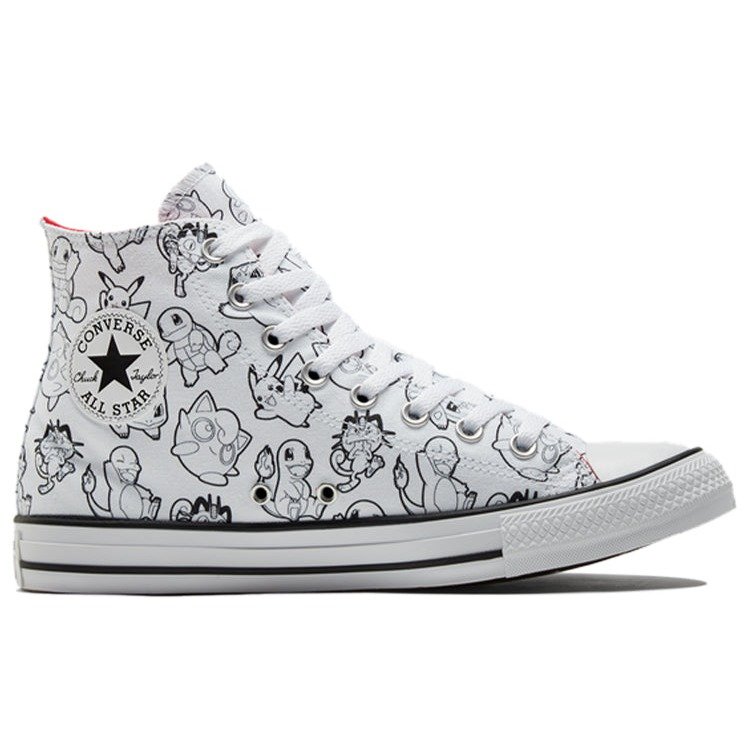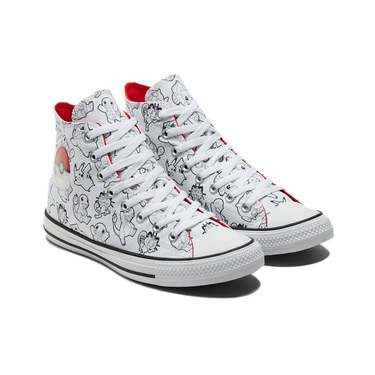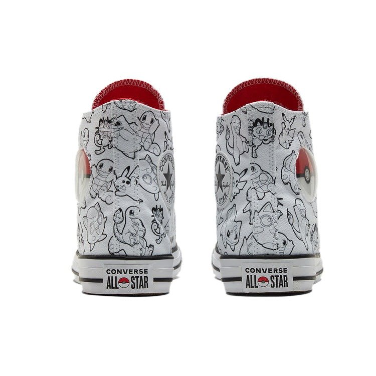 The Converse Chuck Taylor All Star Pokemon Poke Ball is a rendition of the classic Chuck Taylor All Star 70 released to commemorate 25 years of Pokemon.A high-top sneaker, the Pokemon Converse Chuck Taylor All Star Poke Ball features a canvas upper blanketed with graphic prints of various Pokemon characters. This upper rests on a white midsole detailed with two black stripes, diamond patterning around the toe box, and a Converse license plate. Beneath the midsole is a gum-colored rubber outsole, hardened to enhance its durability and patterned for traction. Other details on this shoe include a white toe box rubberized to prevent foot abrasion, an OrthoLite insole for cushioning, a Chuck Taylor All Star leather ankle patch on the medial side, and a Poke Ball embedded on the lateral side.What we love the most about the Converse Chuck Taylor All Star Pokemon Poke Ball is its design, as this shoe uplifts the classic shoe with modern improvements of various colors. This shoe was released on December 7, 2022. At the time, it had a retail price of $70.