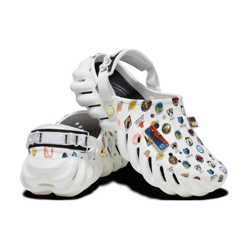 The Crocs Echo Clog NBA All Star Game 2023 is a special edition of the Crocs clogs featuring a sea urchin-inspired design. They were released as part of the 2023 NBA All Star Weekend celebrations.The clogs have a predominantly white color scheme and are made from croslite material, which is easy to mold. They bear the logo of every NBA franchise operating in the country and they are well sorted in no particular order on the clogs’ upper. The clogs also have a comfortable footbed that conforms to shape of your feet, allowing you to wear the clogs for as long as possible.One thing we love about the Crocs Echo Clog NBA All Star Game 2023 is the adjustable heel strap. Fitted with extra padding, this strap allows for a more secure fit while also maintaining comfort levels. The clogs were released for retail priced at $80 on the 1st of February, 2023.