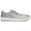 The Jordan 1 Low OG Metallic Silver is a low-top sneaker with a Neutral Grey base and Metallic Silver accents.This sneaker borrows elements from the Air Jordan 1 Retro Japan Grey (2001), including its colorway and the placement of several Metallic Silver details. For example, the vamp, the signature Swoosh logos, the panel around the heel, and the heel tab all display Metallic Silver. On the other hand, Neutral Grey makes up the base and is found on the mudguard and the forefoot overlay. While the Metallic Silver parts are leather, the Neutral Grey pieces are velvety nubuck. The contrast between the nubuck s almost matte texture and the sheen of the Metallic Silver leather makes this Jordan 1 Low OG model stand out from others.Our Newsole experts like the simple Air Jordan Wings logo on the heel tab. The Jordan 1 Low OG Metallic Silver was released on June 1, 2024, and sold for $140.