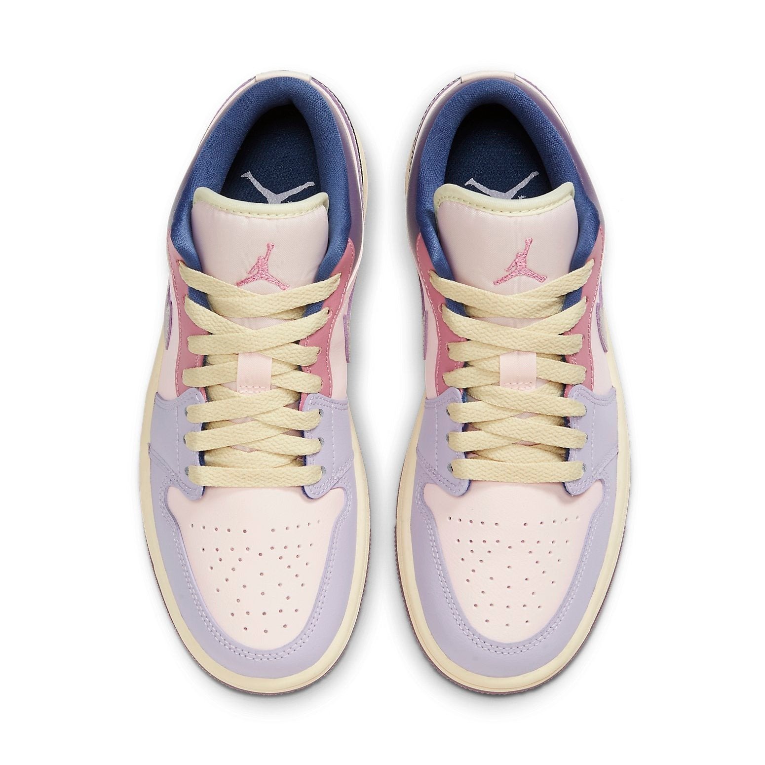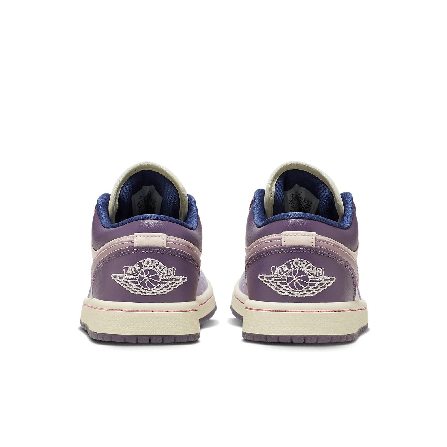 The Air Jordan 1 Low Pastel Purple W in women s sizing is a low-top sneaker of the Air Jordan line by Nike. This shoe has a colorway that combines light shades of purple, blue, cream, and pink with an all-leather upper. The shoe has an embroidered sail-colored Wings logo and a light pink embroidered Jumpman, for branding, together with Nike leather Swooshes in lavender. The laces and midsole have sail accents and pink stitching that round out the look, paired with a semi-translucent purple rubber outsole. The Air Jordan 1 Low Pastel Purple W was release on September 1, 2022 and retailed at $110.